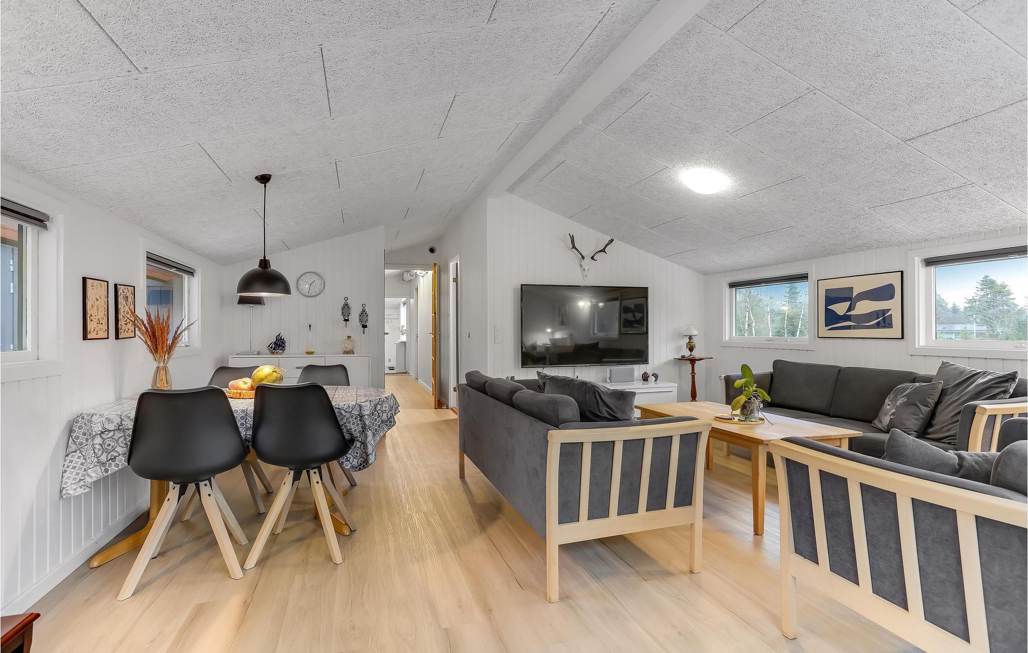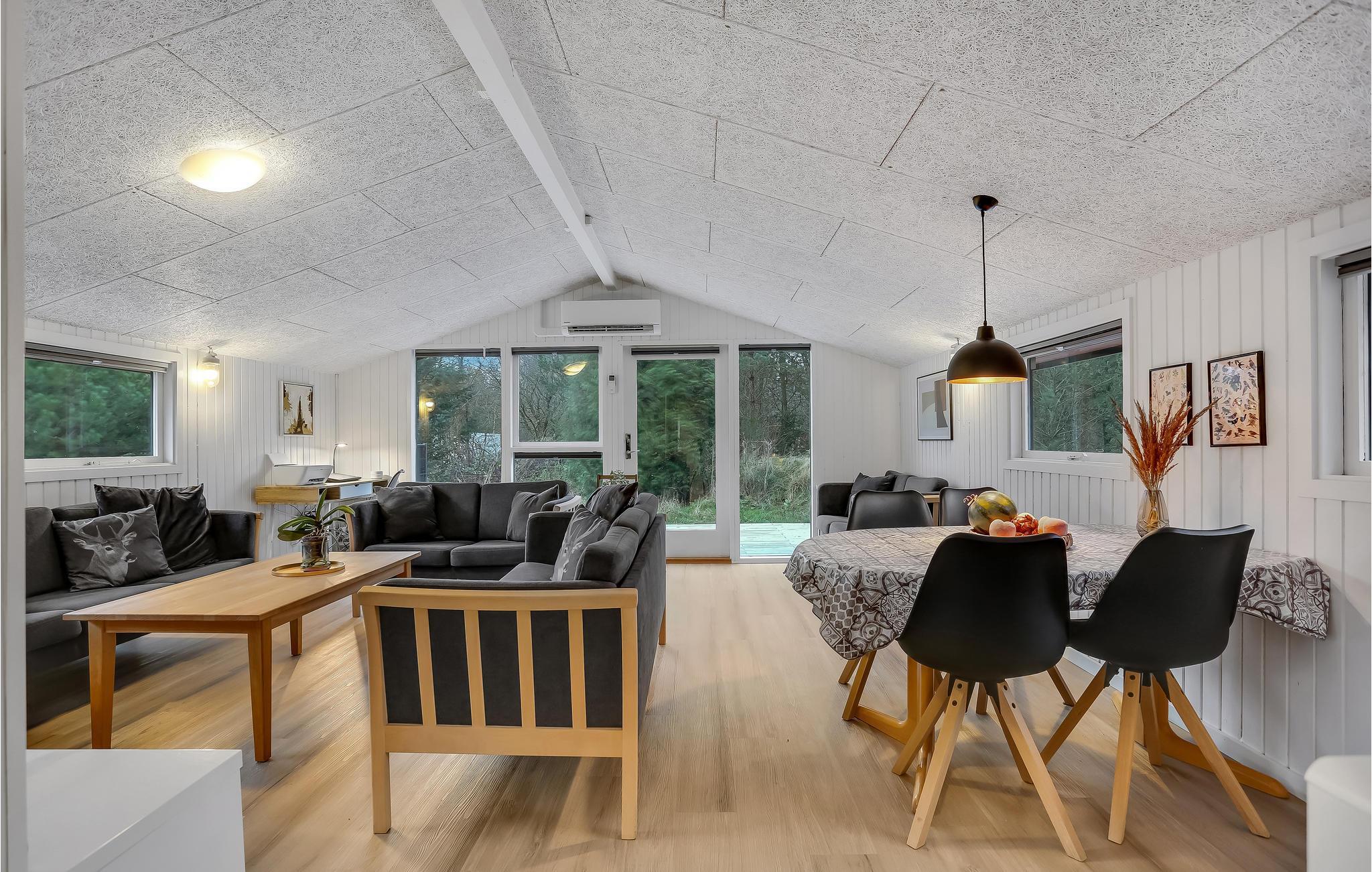 Det rummelige feriehus byder hele jeres store familie velkommen. Her finder I alt hvad I behøver for at slappe af og nyde hinandens selskab. Tilbring afslappende familietid i den lyse og store stue eller spil et spil kort i udestuen. I kan også bruge den store terrasse, hvad enten det er til jeres feriemåltider eller til en afslappende tur i vildmarksbadet med udsigt til naturen.