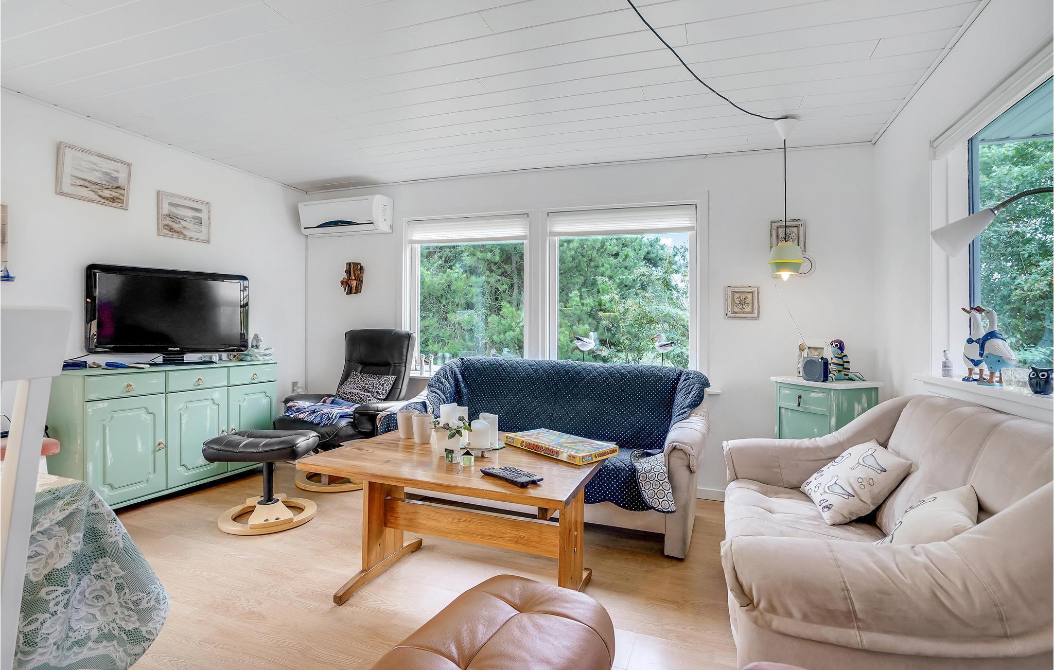 Huset tilbyder alt I behøver til en afslappende ferie - et dejligt køkken, hyggelige opholdsstuer, et badeværelse med bruser og to soveværelser. Efter en lang feriedag kan I tilbringe hyggelige aftener i sofaen eller tilberede lækre feriemåltider i det rummelige køkken.