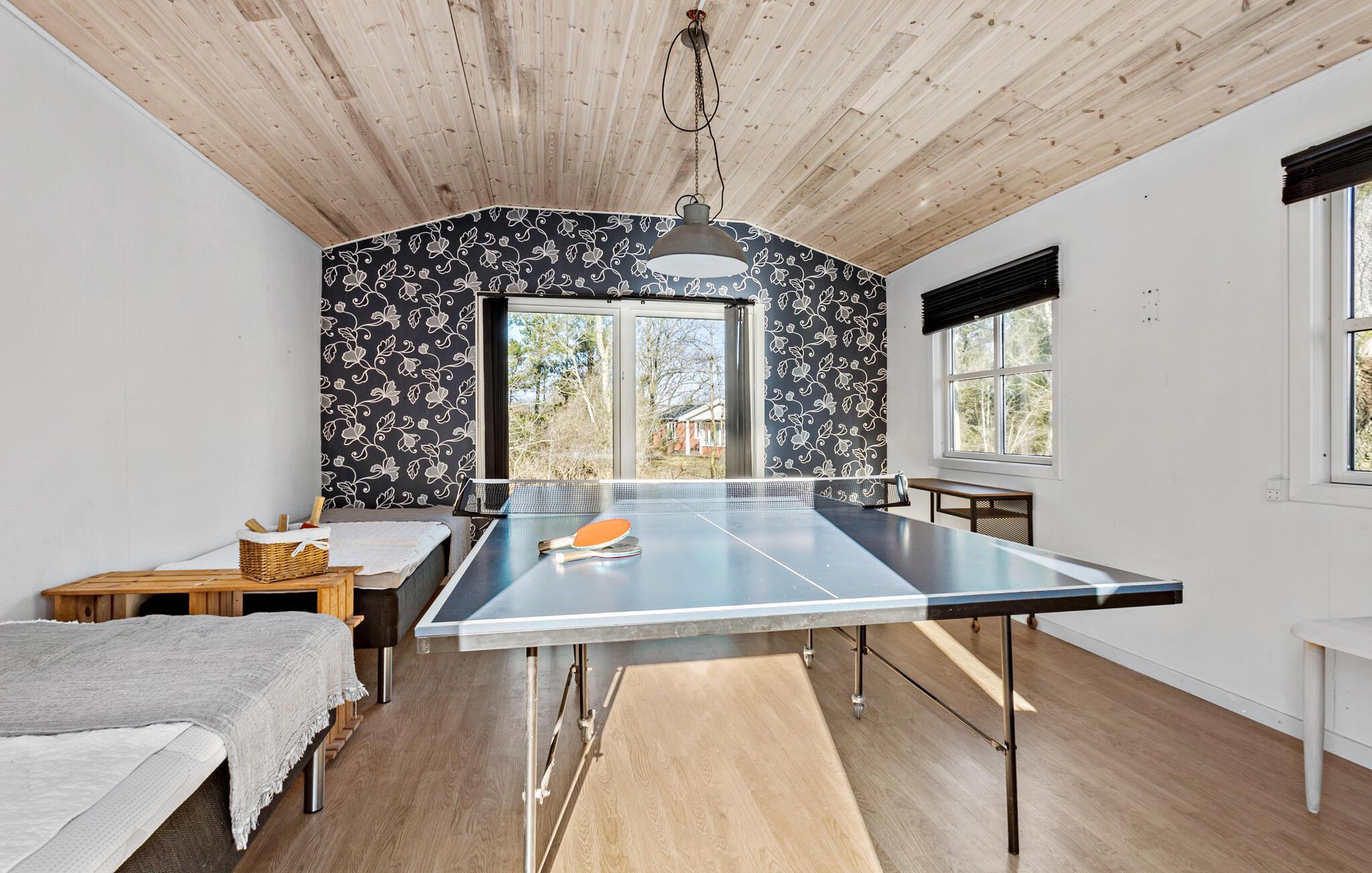 Tæt på vandet og i skovens stille ro ligger dette hyggelige feriehus ved Lyngså Strand. Huset er både charmerende og indbydende med gode indretningsløsninger, der lægger op til masser af hygge og sjov på ferien. Kræs om livretterne i køkkenet, mens andre lægger puslespil ved spisebordet eller læser en god bog i sofaen. Efter aftensmaden kan I forbrænde kalorierne ved bordtennisbordet, inden I runder af i stuen med brætspil eller en god film i sofaen.
