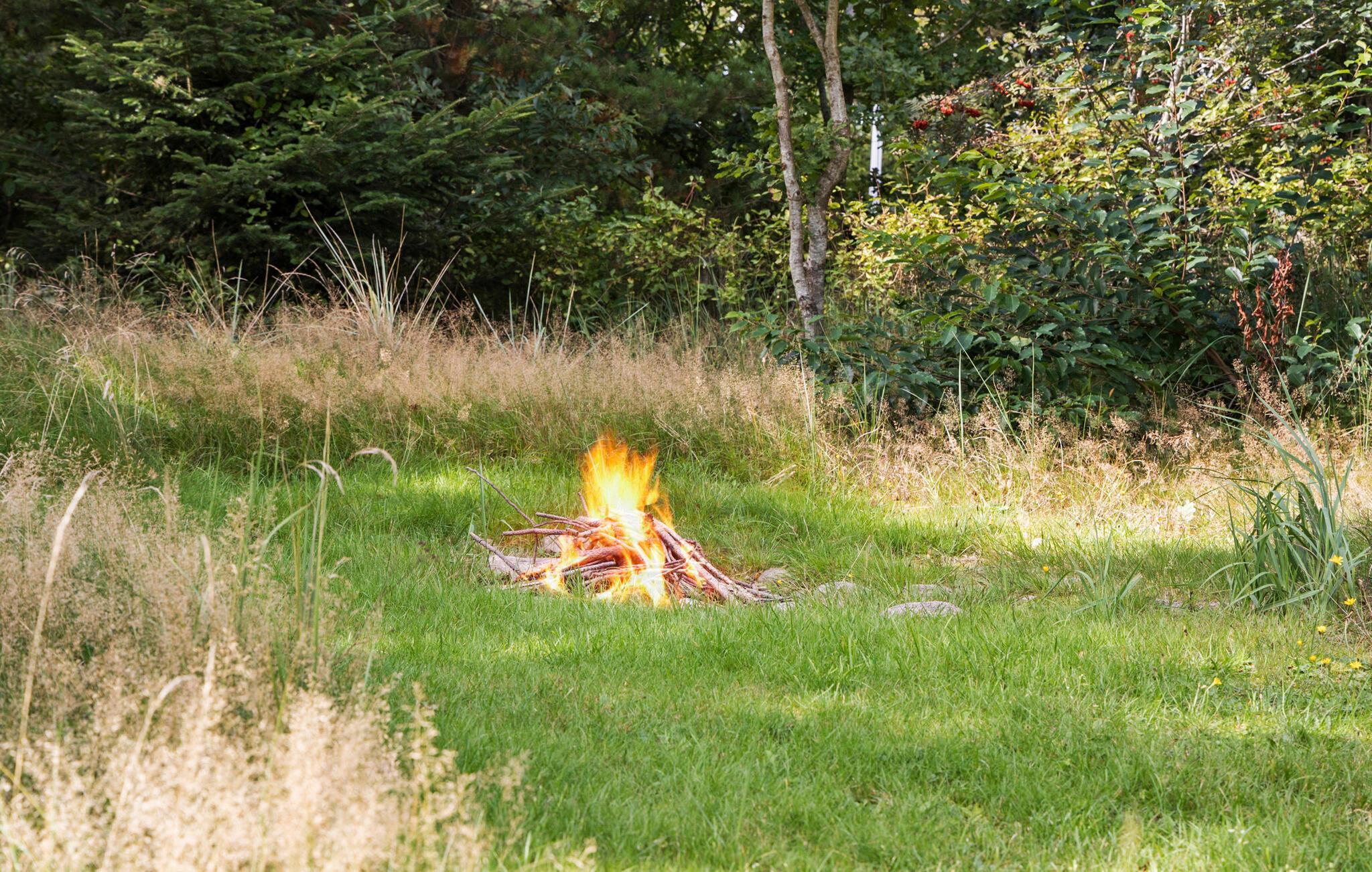 På de varme dage lokker træterrassen jer udenfor til mange skønne timer i det fri. Find jer godt til rette med et godt krydsord i liggestolene, nyd den bagende sol og lad børnene løbe rundt og lege på plænen. Om aftenen kan I fyre op i grillen og nyde de saftige bøffer og et godt glas vin. Lad en smuk feriedag gå på hæld ved den sagte ild på bålpladsen, hvor I kan bage snobrød og stege skumfiduser til den store guldmedalje.