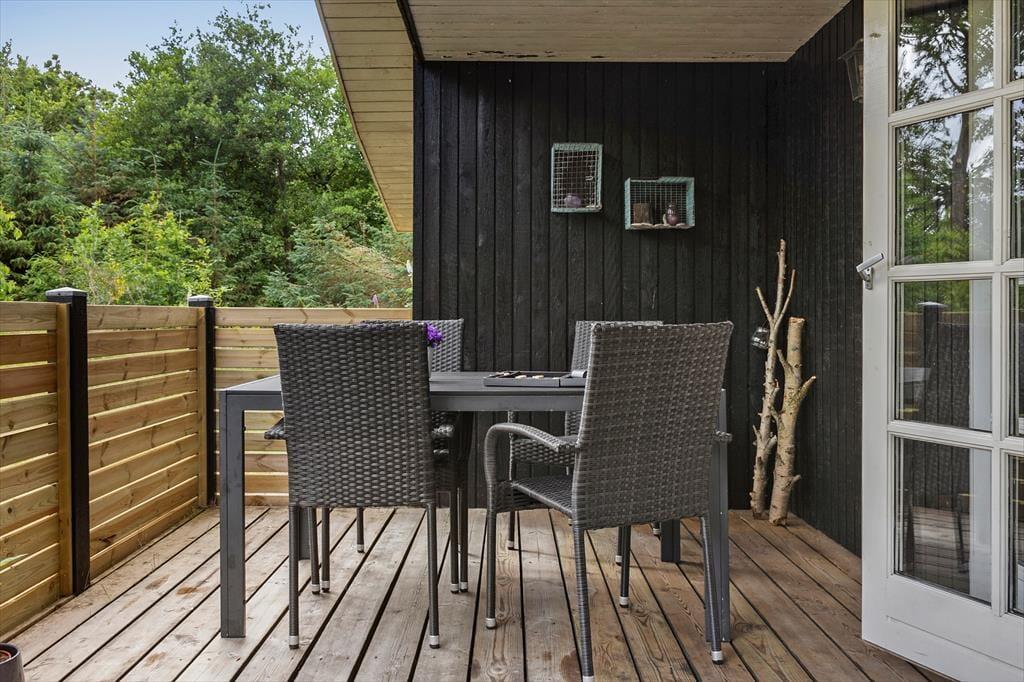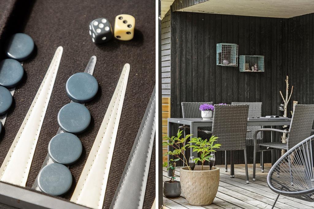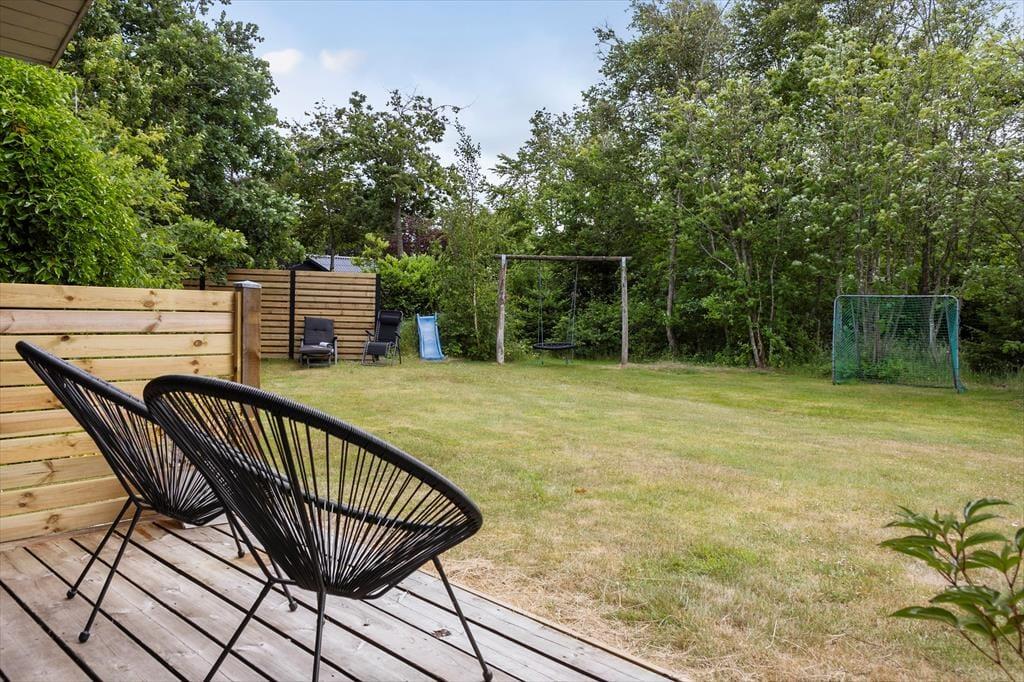 Udendørs fortsætter feriestemningen i det grønne. Haven er både charmerende og indbydende med plads til leg, afslapning og samvær. På den overdækkede terrasse kan I nyde jeres måltider i læ for sol eller regn, og når solen skinner fra en skyfri sommerhimmel, er det oplagt at rykke liggestolene frem og nyde eftermiddagen i fred og ro. Havelivet her byder på små pauser med fuglekvidder i baggrunden og duften af nybrygget kaffe – måske med en god bog eller lidt grillmad, mens børnene spiller bold eller leger gemme i det grønne. Der er mange muligheder for at skabe jeres egne ferieritualer i haven og på terrassen – uanset om I er til udeliv eller blot vil nyde naturen fra første parket.