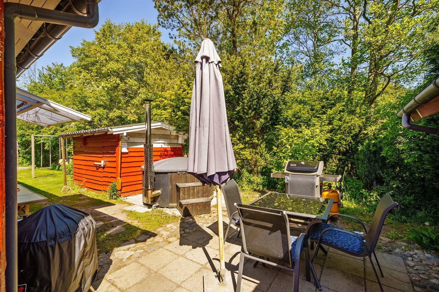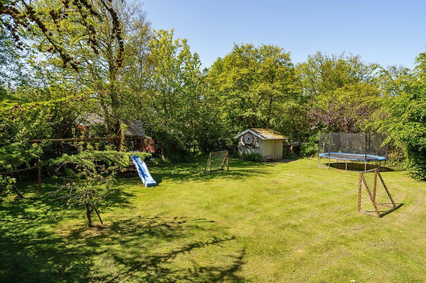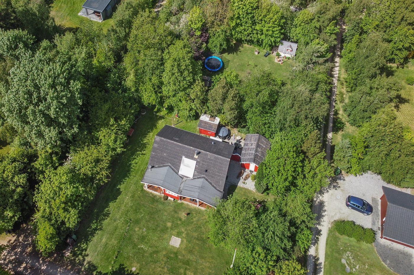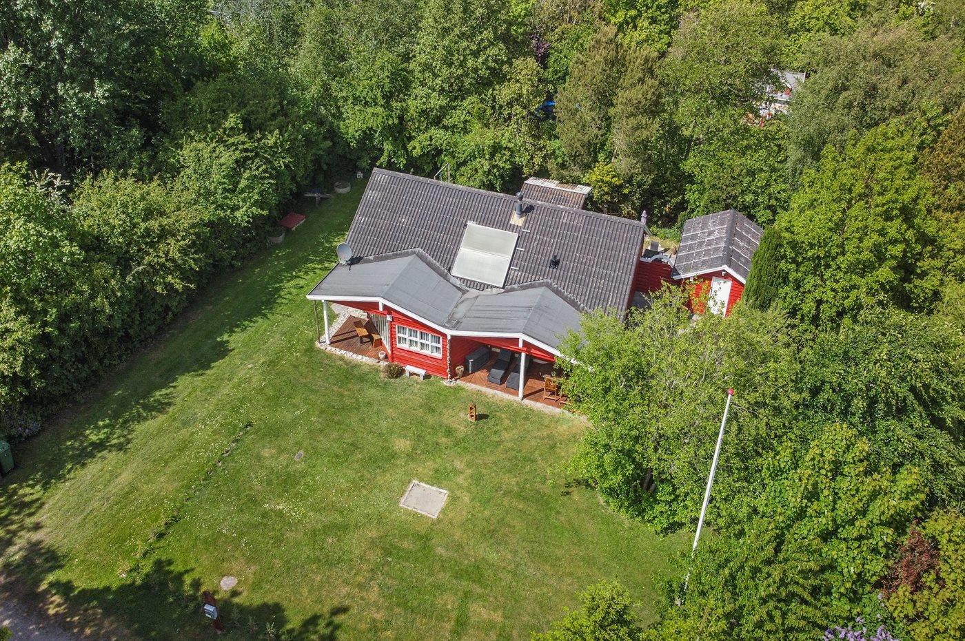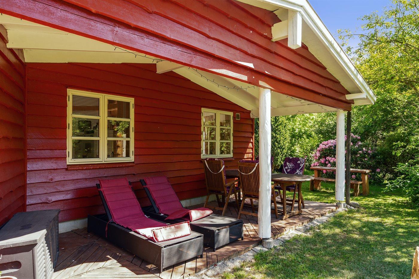 Ferieboligen er beliggende på en 2878 m² stor naturgrund. En del af grunden er indhegnet. Der er 500 m til fjorden. Nærmeste forretning er beliggende i en afstand af 7000 m. Der er en golfbane i en afstand af 12000 m. Til ferieboligen hører 30 m² terrasseareal. Desuden er der 30 m² overdækket terrasse. Gynge. Sandkasse. Legehus. Trampolin. Legetårn. Rutchebane. Vippe. Fodboldmål. Bålsted. Udendørs bruser. Der er mulighed for at tilberede maden udendørs i udekøkkenet. Grill til rådighed. Der er installeret stik til opladning af elbil. CEE stik. Med 5 kW ladeeffekt. Parkering ved ferieboligen.
