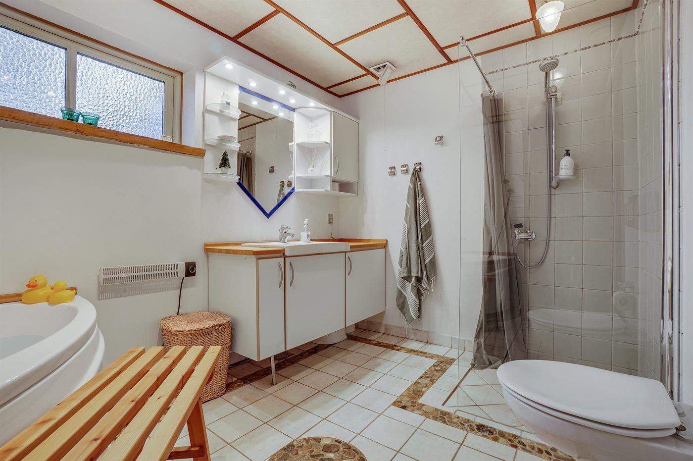 Der er 1 badeværelse med bruseniche og 2 toiletter, heraf 1 gæstetoilet. Der er gulvvarme på 1 badeværelse.