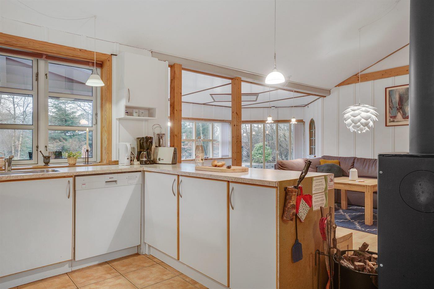 Køkkenet er udstyret med 1 køleskab. Der er 4 keramiske kogeplader, varmluftovn, mikrobølgeovn samt opvaskemaskine.