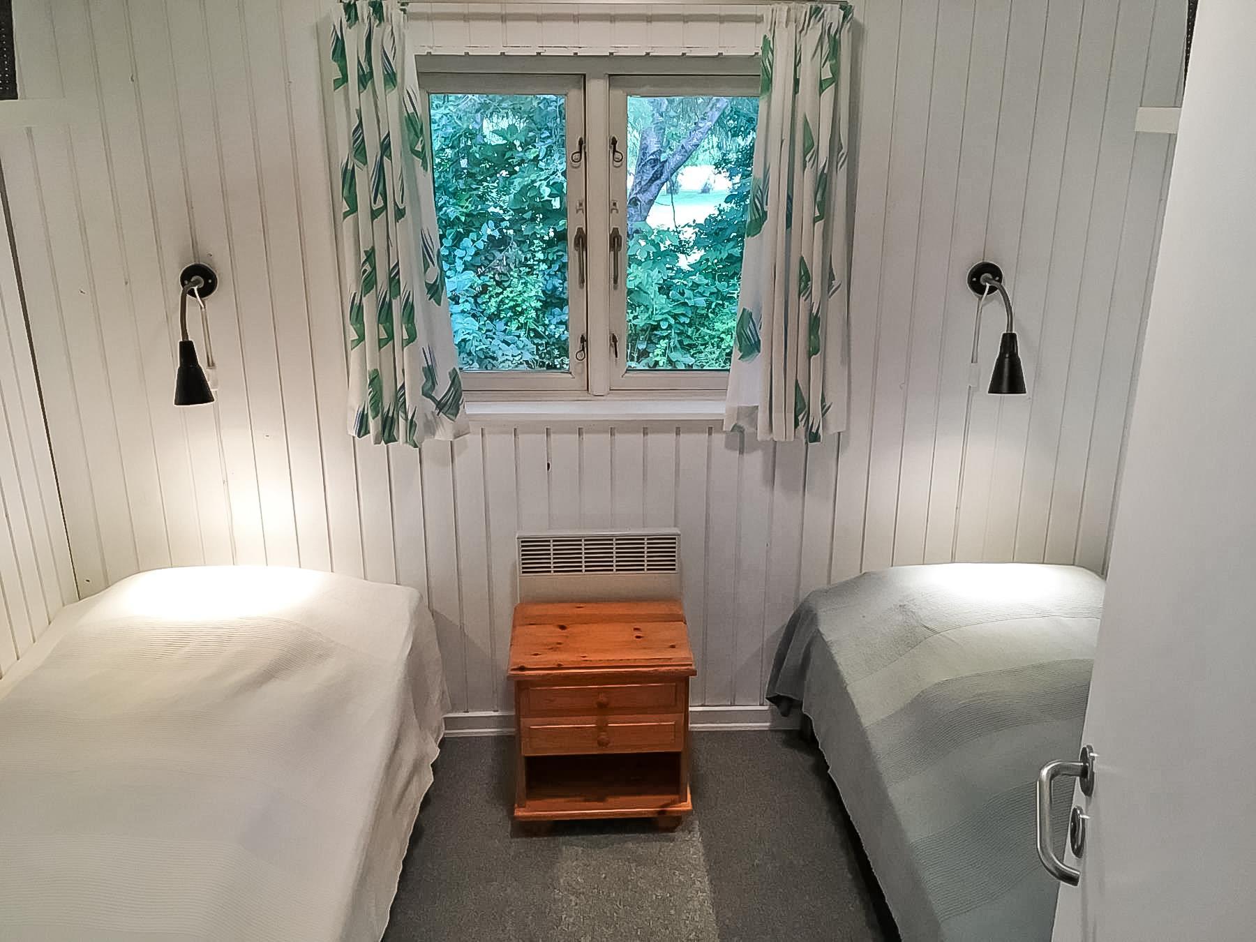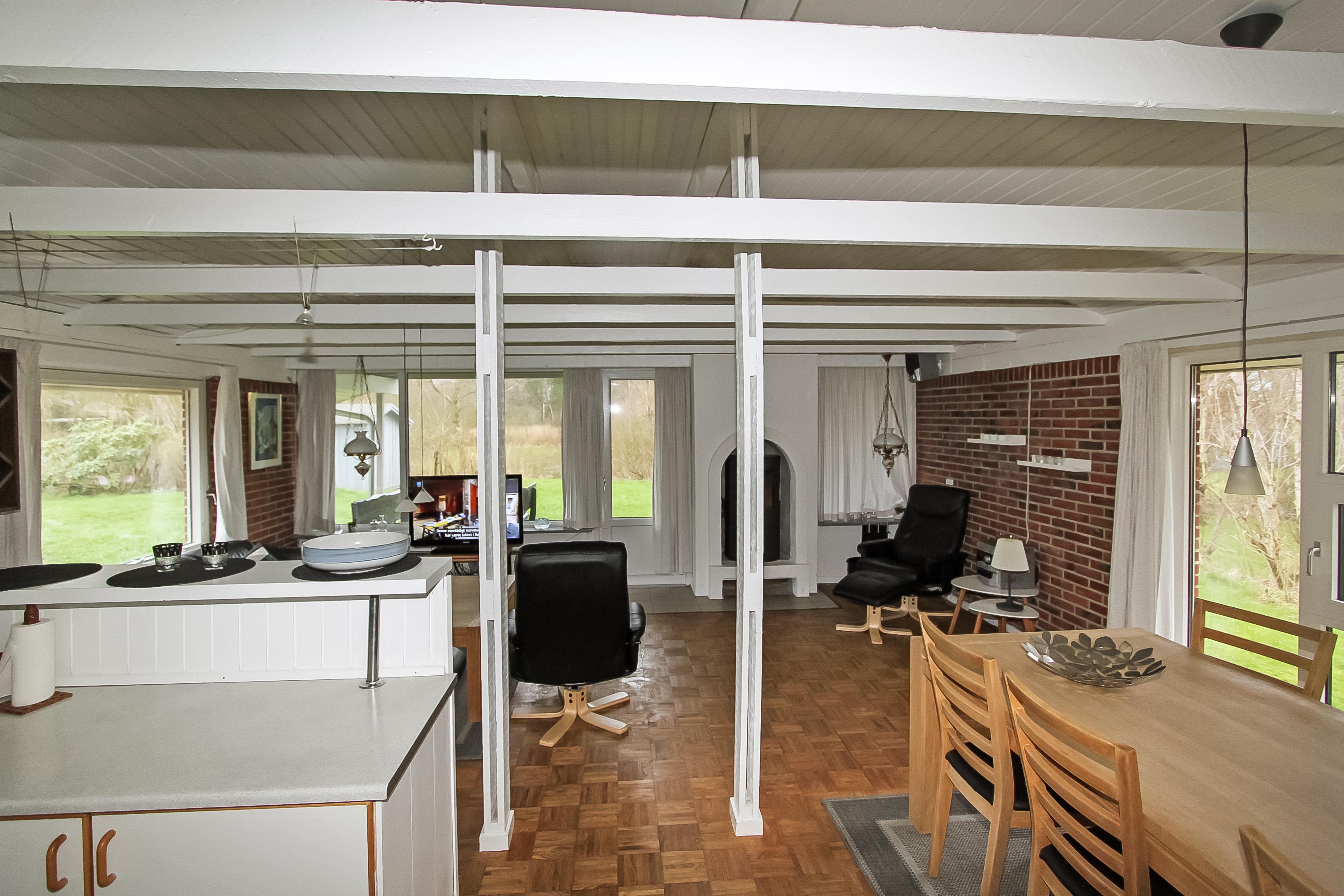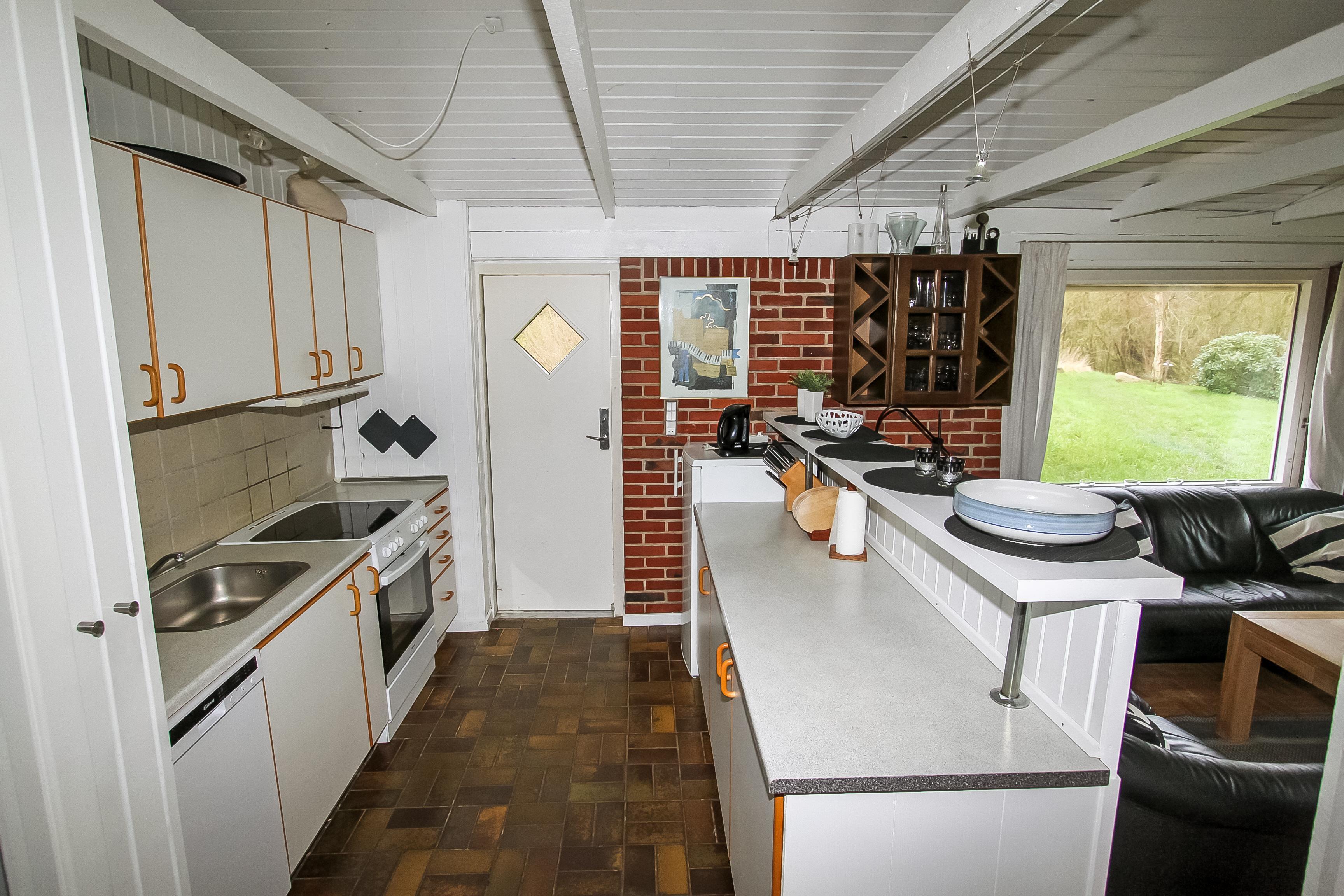 Sommerhuset er indrettet med kombineret stue og køkken. Køkkenet er veludstyret med keramiskkomfur, opvaskemaskine, emhætte, køleskab, separat fryser og mikrobølgeovn. Den store stue er lyst og pænt indrettet med komfortable lædermøbler. Der er TV med enkelte danske programmer og der parabol med mange tyske og nogle engelske kanaler. Der er gratis internetforbindelse samt stereoanlæg med cd-afspiller. Til en efterårsaften med regn og rusk eller en kølig sommeraften er der hyggelig brændeovn til at varme og sprede hygge. Huset er udstyret med ventilationsanlæg. Sommerhuse er indrettet til i alt 6 personer. Der er tre gode og lyse soveværelser. To er indrettet med dobbeltseng og et med to enkeltsenge. Badeværelset er lyst og pænt med toilet, håndvask, bruseniece og behagelig gulvvarme. Der er separat afdeling med husets sauna hvor i kan blive gennem varmet efter en lang travetur i områdets dejlige natur. I samme afdeling er der ekstra badeværelse med toilet, håndvask, bruseniece og gulvvarme. Der er desuden vaskemaskine til gæsternes rådighed. Til de yngste gæster er der barneseng og højstol. Det er næsten altid muligt at finde læ på en af de tre terrasser som hører til huset, hvortil der er såvel grill samt bålplads hvor i kan nyde de lune sommeraftner. Udenfor er der sandkasse, gynger, klatrestativ og naturlegeplads.