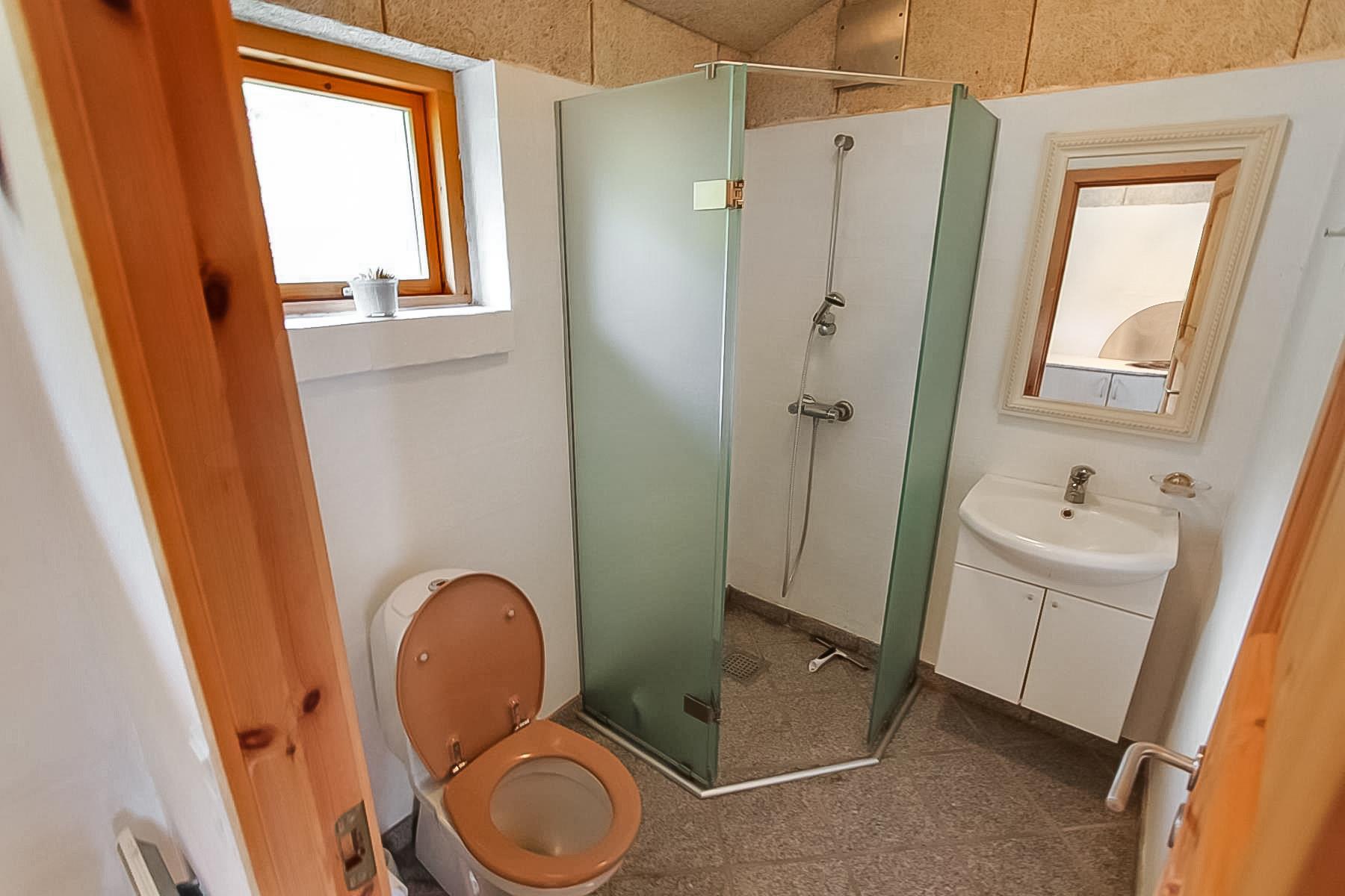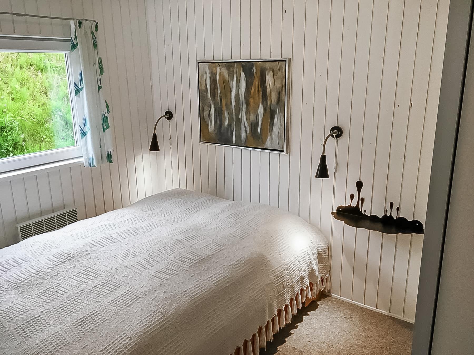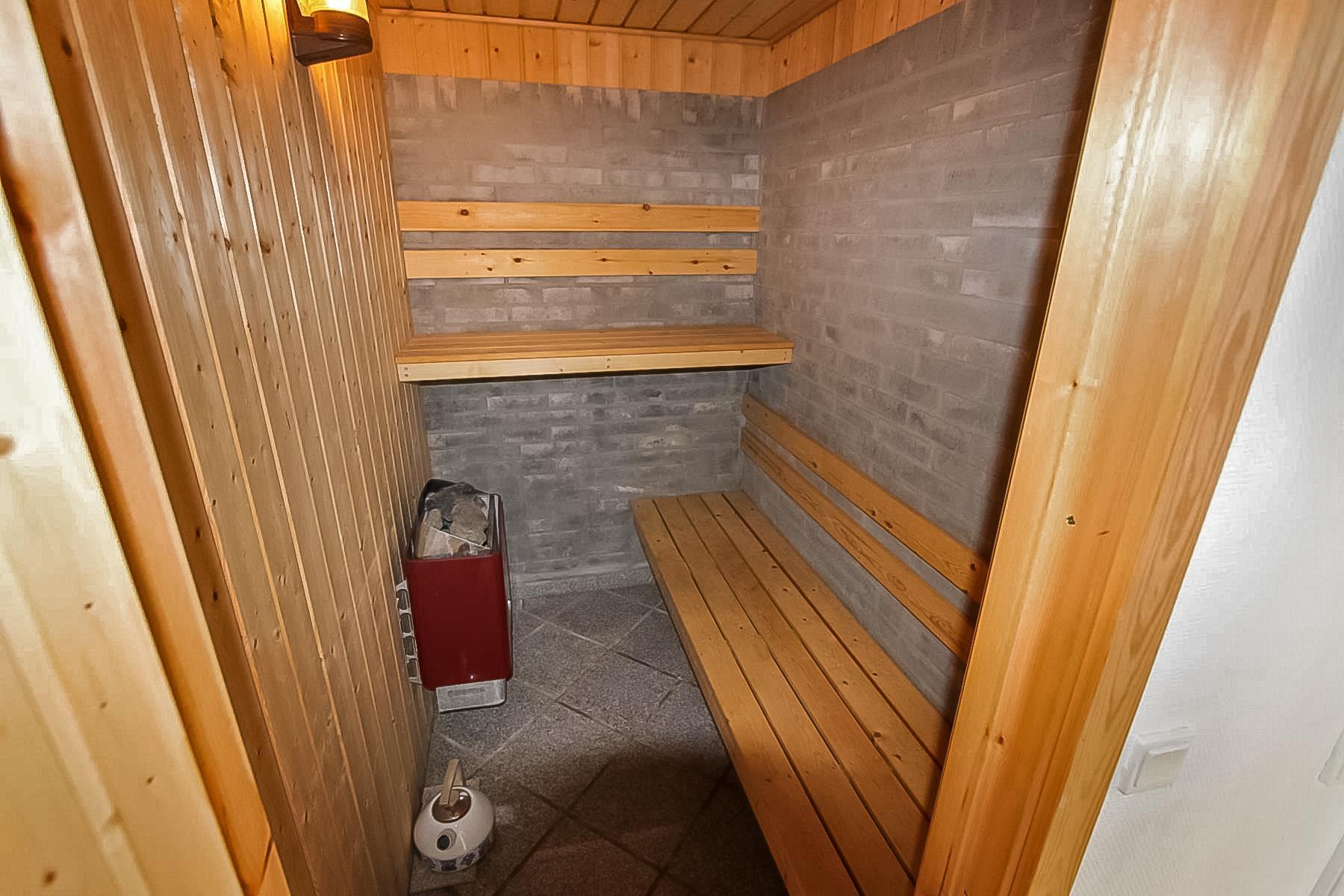 Sommerhuset er indrettet med kombineret stue og køkken. Køkkenet er veludstyret med keramiskkomfur, opvaskemaskine, emhætte, køleskab, separat fryser og mikrobølgeovn. Den store stue er lyst og pænt indrettet med komfortable lædermøbler. Der er TV med enkelte danske programmer og der parabol med mange tyske og nogle engelske kanaler. Der er gratis internetforbindelse samt stereoanlæg med cd-afspiller. Til en efterårsaften med regn og rusk eller en kølig sommeraften er der hyggelig brændeovn til at varme og sprede hygge. Huset er udstyret med ventilationsanlæg. Sommerhuse er indrettet til i alt 6 personer. Der er tre gode og lyse soveværelser. To er indrettet med dobbeltseng og et med to enkeltsenge. Badeværelset er lyst og pænt med toilet, håndvask, bruseniece og behagelig gulvvarme. Der er separat afdeling med husets sauna hvor i kan blive gennem varmet efter en lang travetur i områdets dejlige natur. I samme afdeling er der ekstra badeværelse med toilet, håndvask, bruseniece og gulvvarme. Der er desuden vaskemaskine til gæsternes rådighed. Til de yngste gæster er der barneseng og højstol. Det er næsten altid muligt at finde læ på en af de tre terrasser som hører til huset, hvortil der er såvel grill samt bålplads hvor i kan nyde de lune sommeraftner. Udenfor er der sandkasse, gynger, klatrestativ og naturlegeplads.