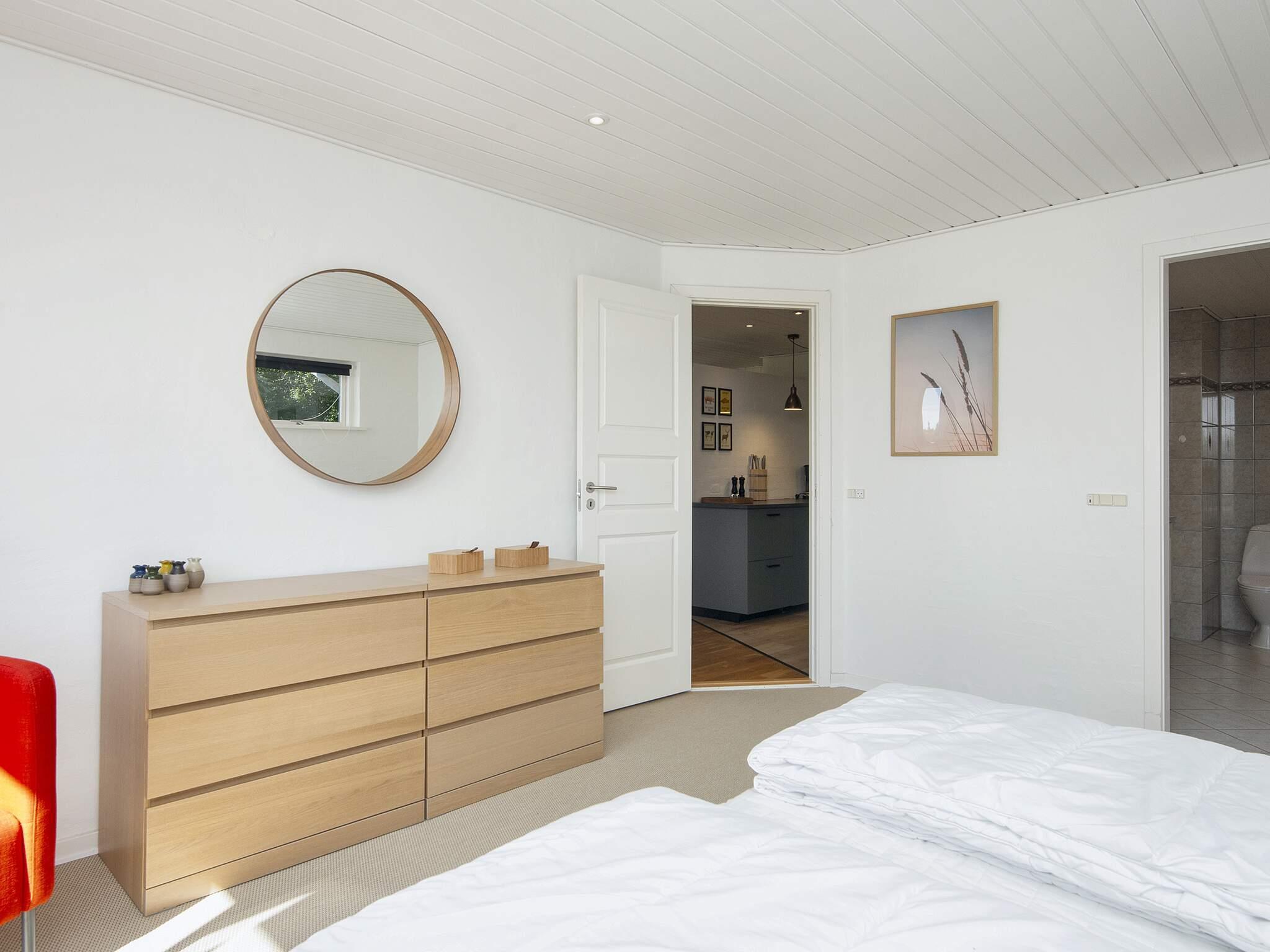 Indvendigt er boligen smart opdelt i to fløje. Til den ene side finder du det åbne køkken, der løber ud i en rummelig spiseplads med en hyggelig brændeovn, ideel til fælles måltider og lange aftener sammen. Bag dette ligger et generøst soveværelse med eget en-suite badeværelse komplet med boblebad for ekstra afslapning.