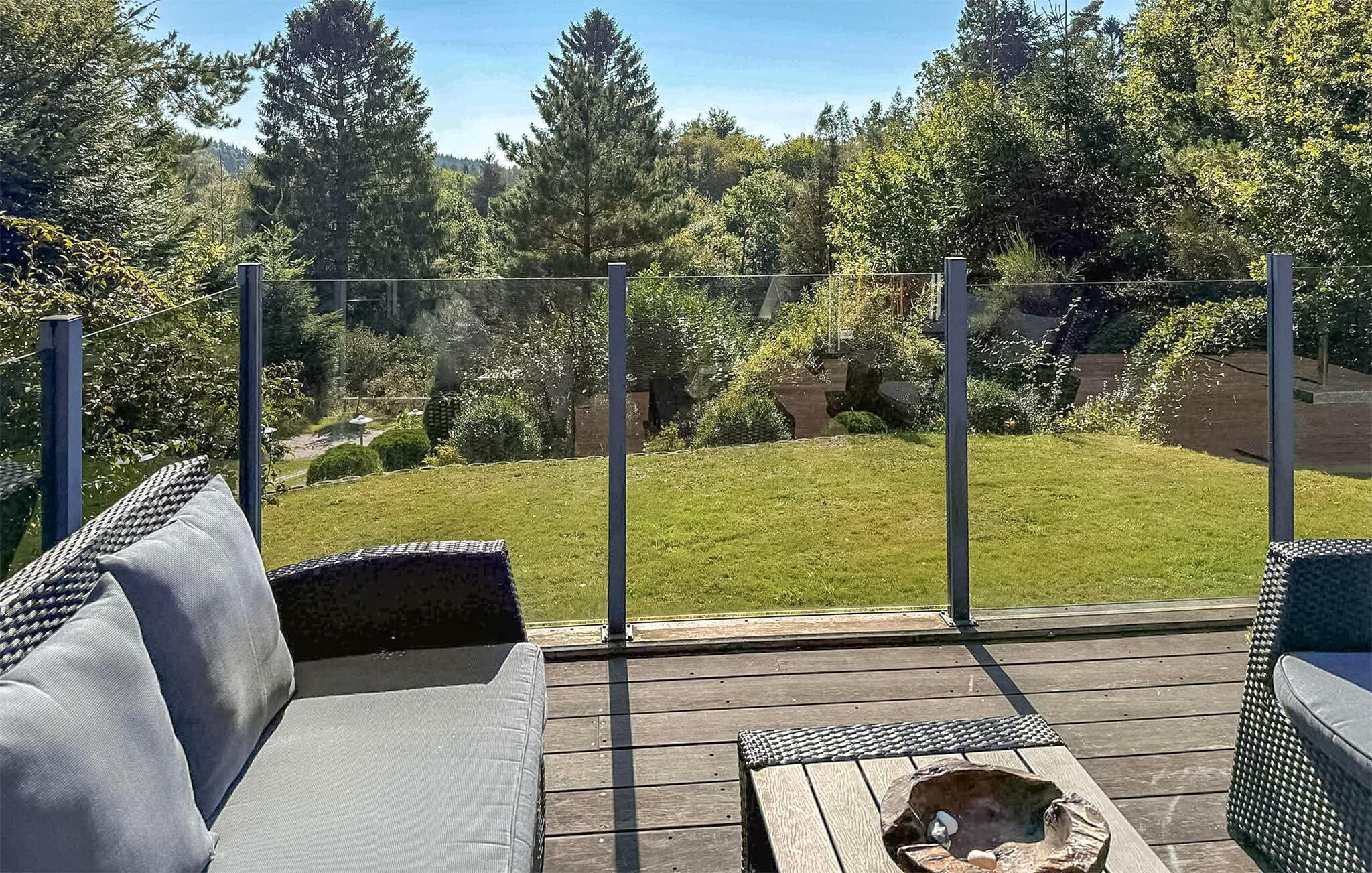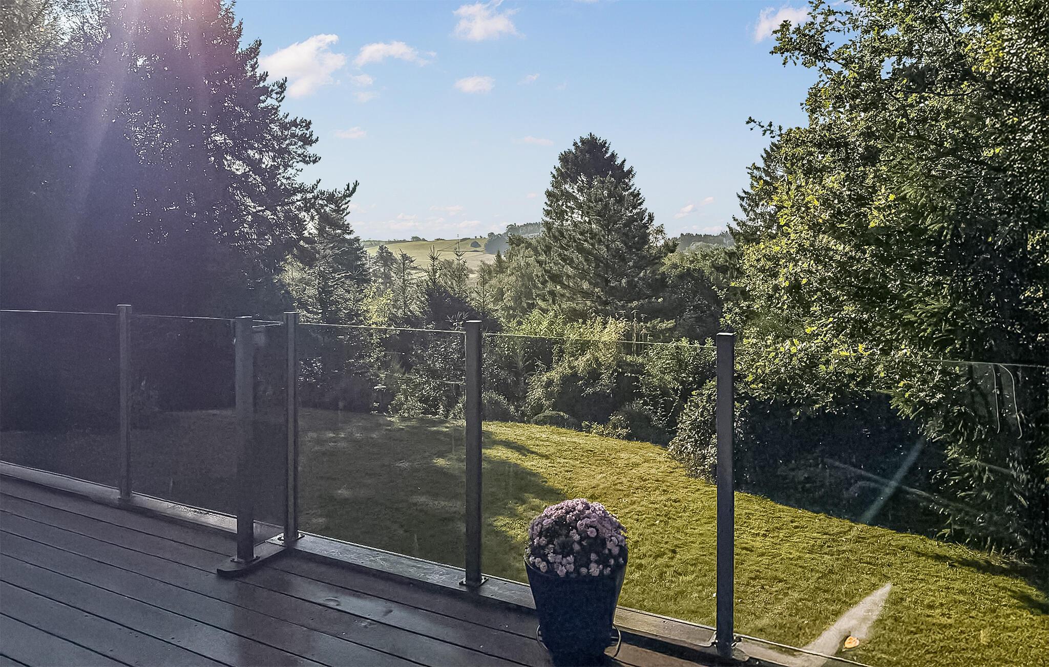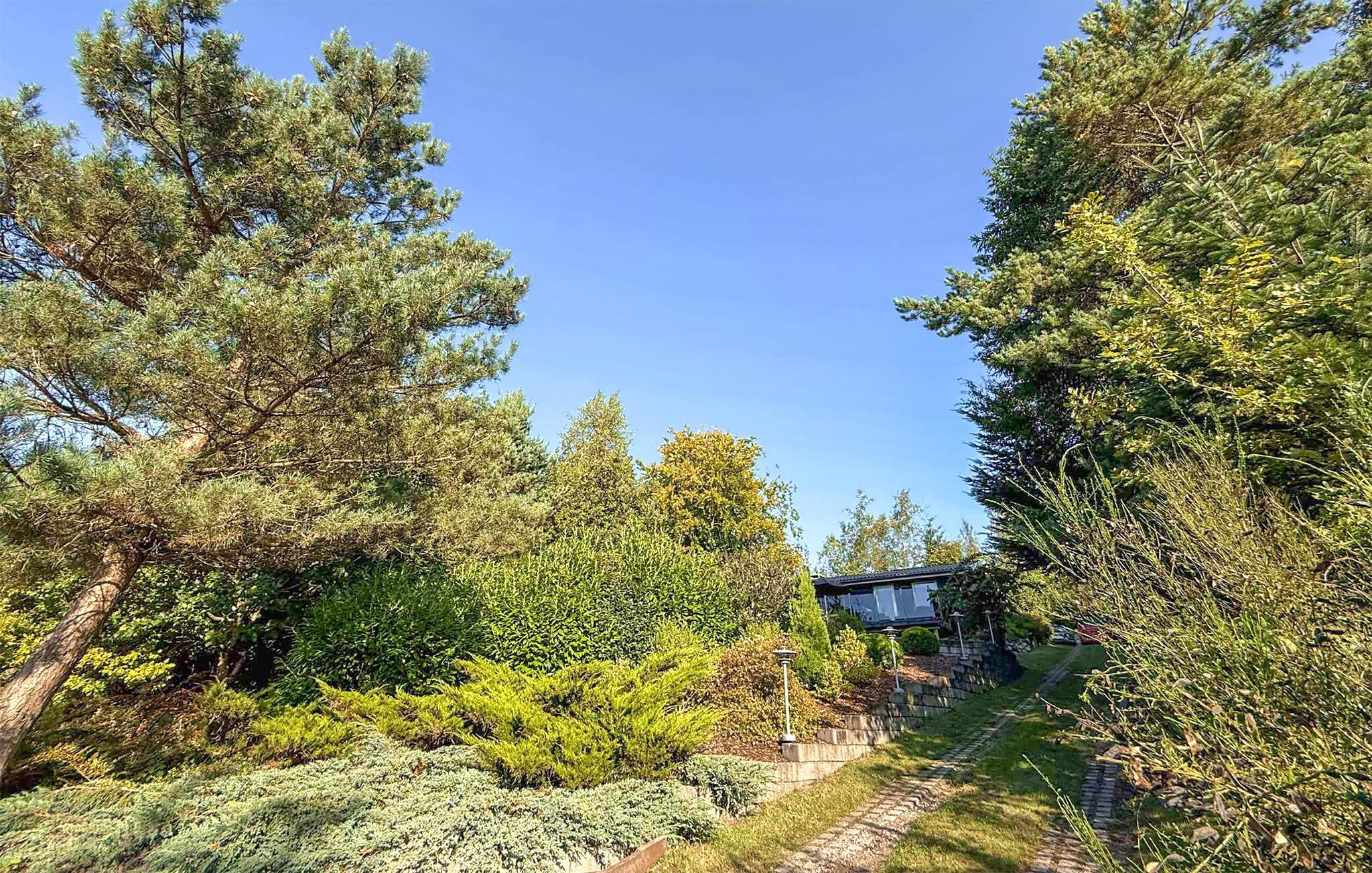 Flot renoveret sommerhus med udsigt til sø og stor sydvendt terrasse i naturskønt område nær strand og indkøb.
