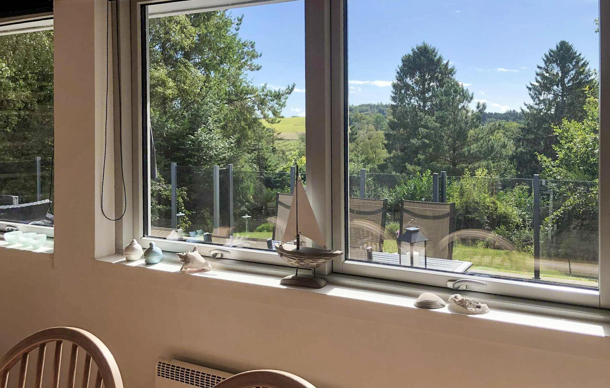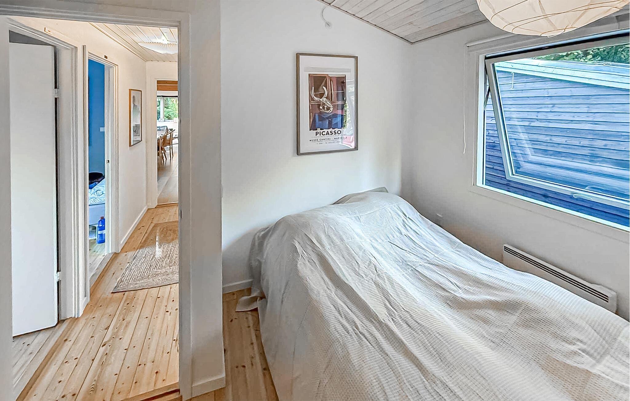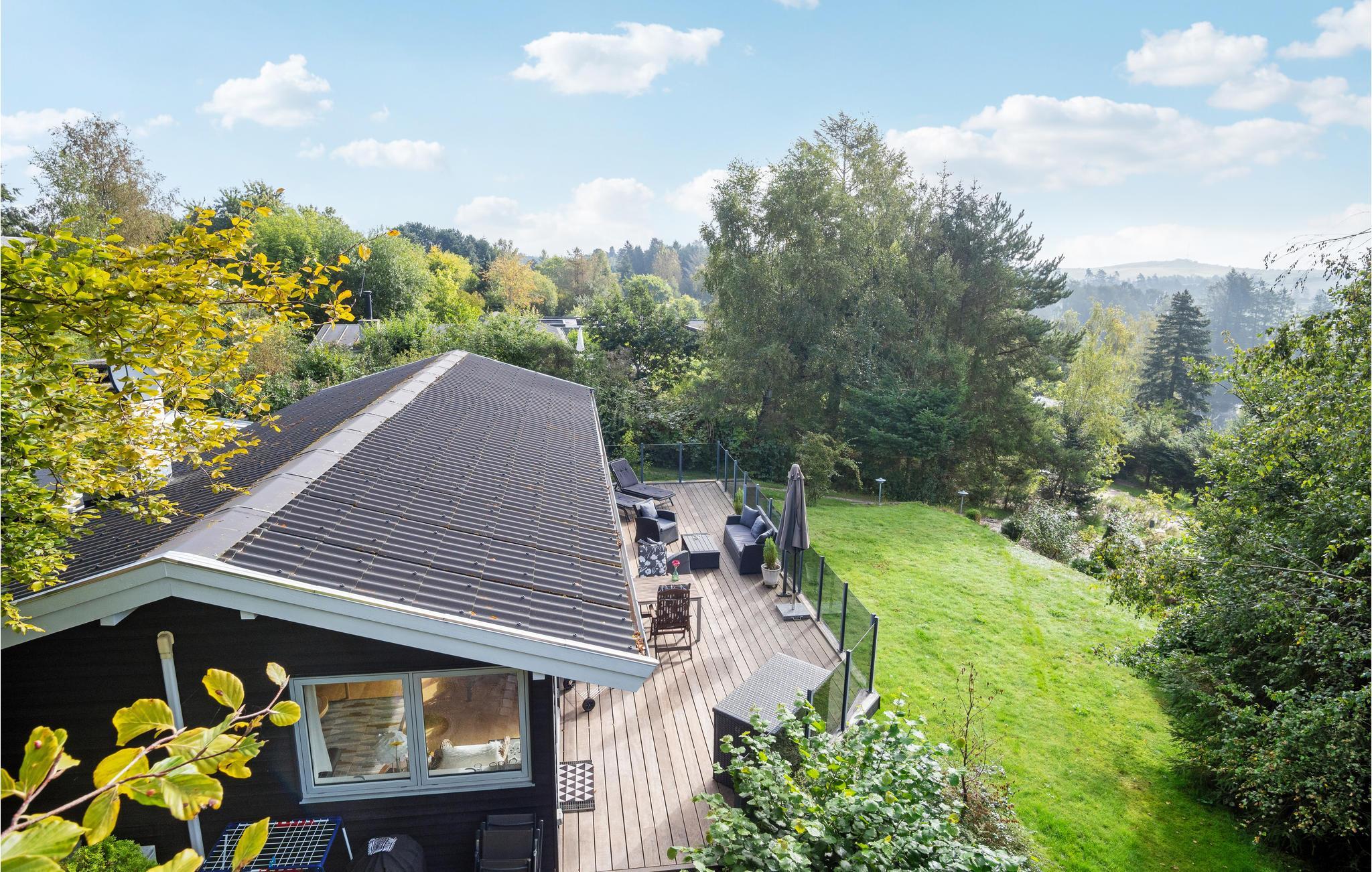 Flot renoveret og veludstyret sommerhus med pæn og lys møblering. Huset er beliggende på en skrående grund med smuk landskabelig udsigt, samt til mindre sø. Meget hyggeligt og idyllisk. Huset er indrettet med 3 gode soveværelser, det ene med udgang til terrassen. Stor sydvendt træterrasse. Området er et veludbygget sommerhusområde omgivet af flot natur med både store og små træer, buske mm. 5 min. i bil og du er ved en af området mest populære sandstrande, I bor nær indkøbsmuligheder og flere spisesteder.