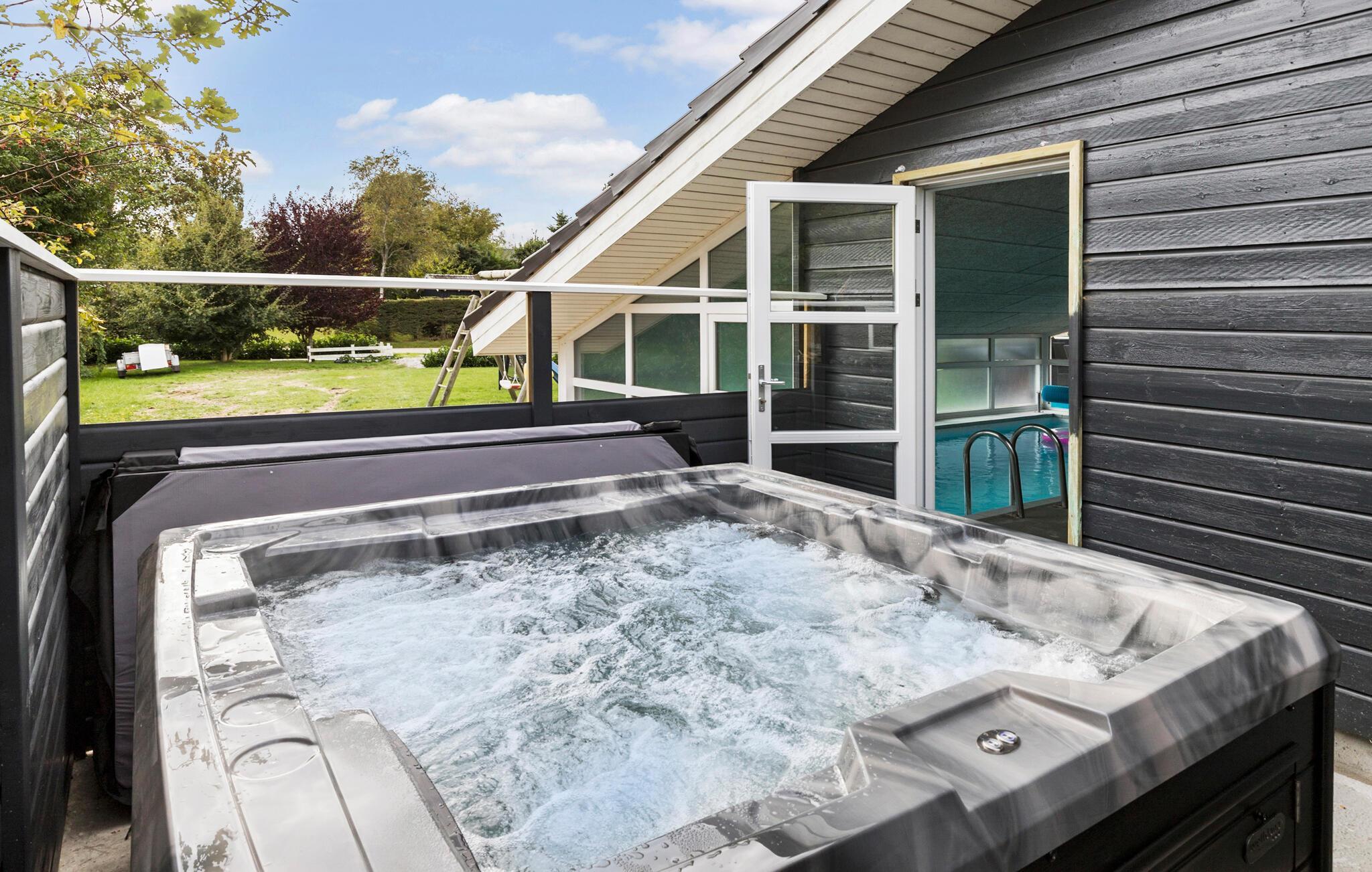 Stort feriehus nær stranden i Ebeltoft med saltvandspool, spabad og sauna for ultimativ afslapning.