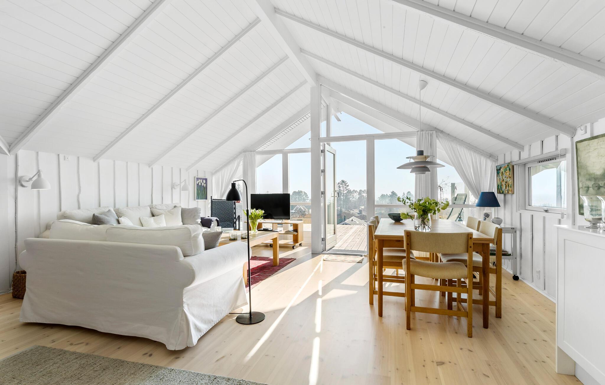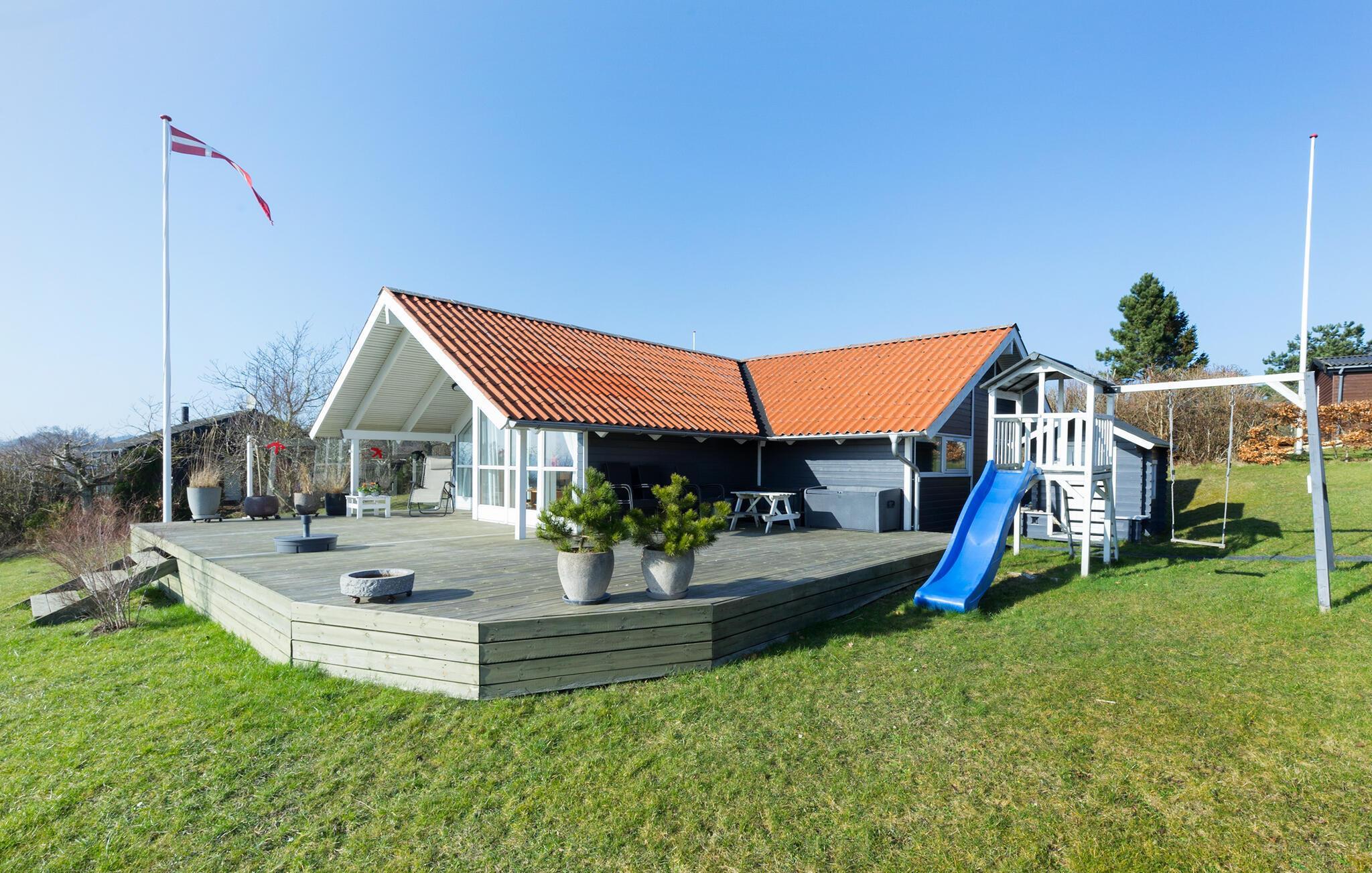 Udeområdet indbyder også til afslappende og aktive timer. Brug den store terrasse til grillaftener sammen og tilbring hyggelige timer udendørs. Der er talrige legemuligheder for børn, herunder en gynge og en sandkasse. Og glem ikke at nyde den rolige atmosfære og vidstrakte udsigt over bugten.