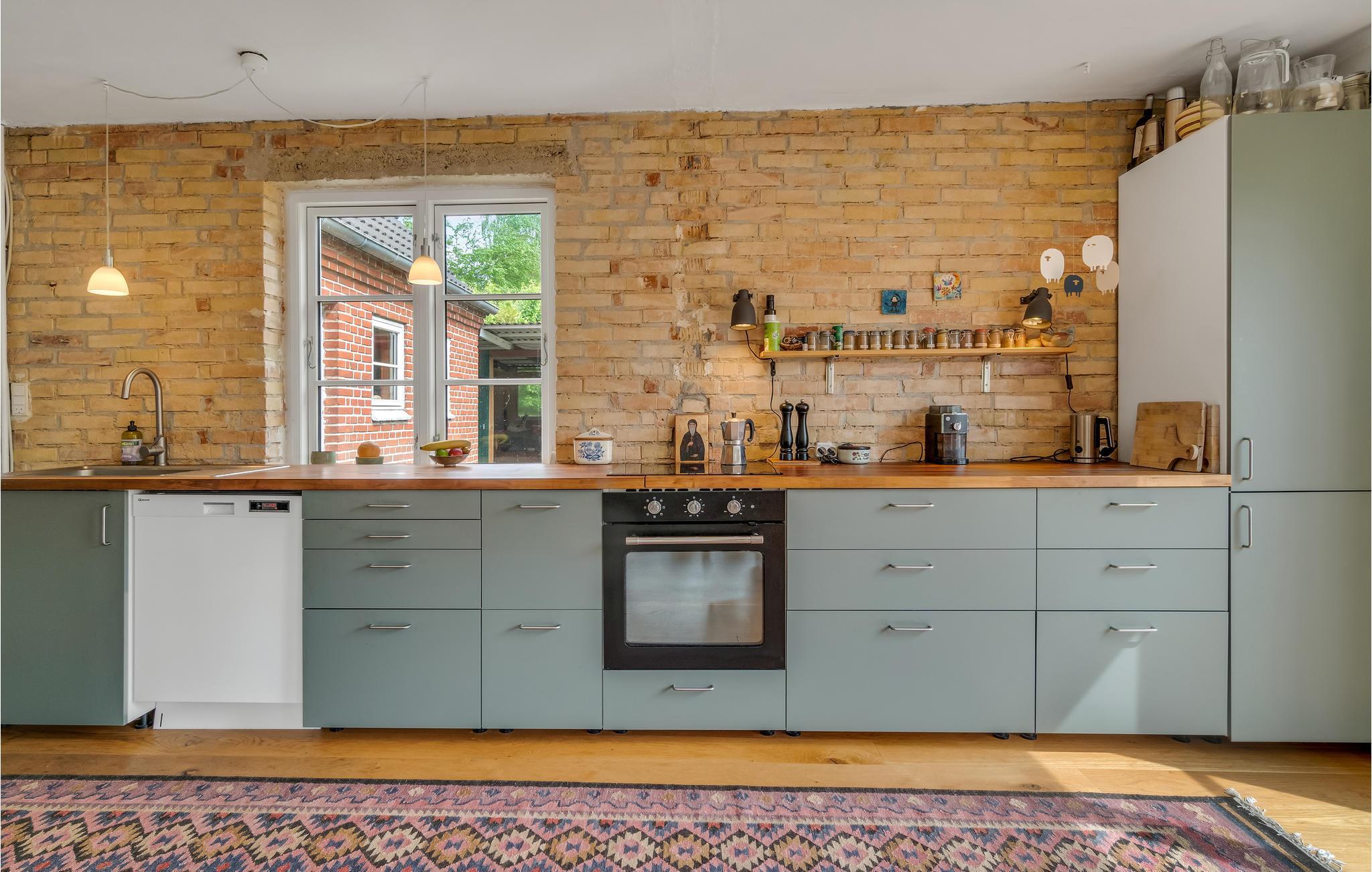 Glæd jer til en ferie i denne skønne region. Huset giver jer de perfekte betingelser for en vellykket ferie. Gå ind i feriehuset, som er fordelt på to etager, og lad feriestemningen brede sig. Den rå murstensvæg, farvedetaljerne, de mange vinduer og det mintgrønne køkken bidrager til en stemningsfuld atmosfære. Pak skærmene væk og nyd den tiltrængte kvalitetstid. Tilbring underholdende timer med at lave mad, spille, lægge puslespil og quizze. Nyd skønne timer på den store træterrasse, gå til stranden og læg bøfferne og pølserne på grillen om aftenen.