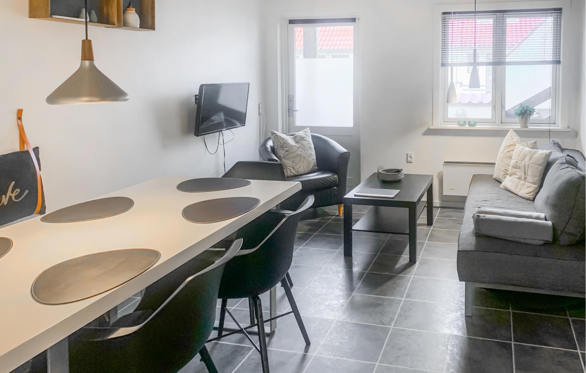 Velkommen til denne lejlighed i Lyngsbæk Feriecenter ikke langt fra stranden. De indbydende værelser er hjemligt indrettede og danner en behagelig ramme for en afslappende ferie. Efter en begivenhedsrig dag kan I benytte jer af feriecenterets mange tilbud, og senere kan I nyde måltider sammen ved spisebordet. Alt imens har I en masse god til at lægge planer for de kommende feriedage og bare slappe af i stuen.
