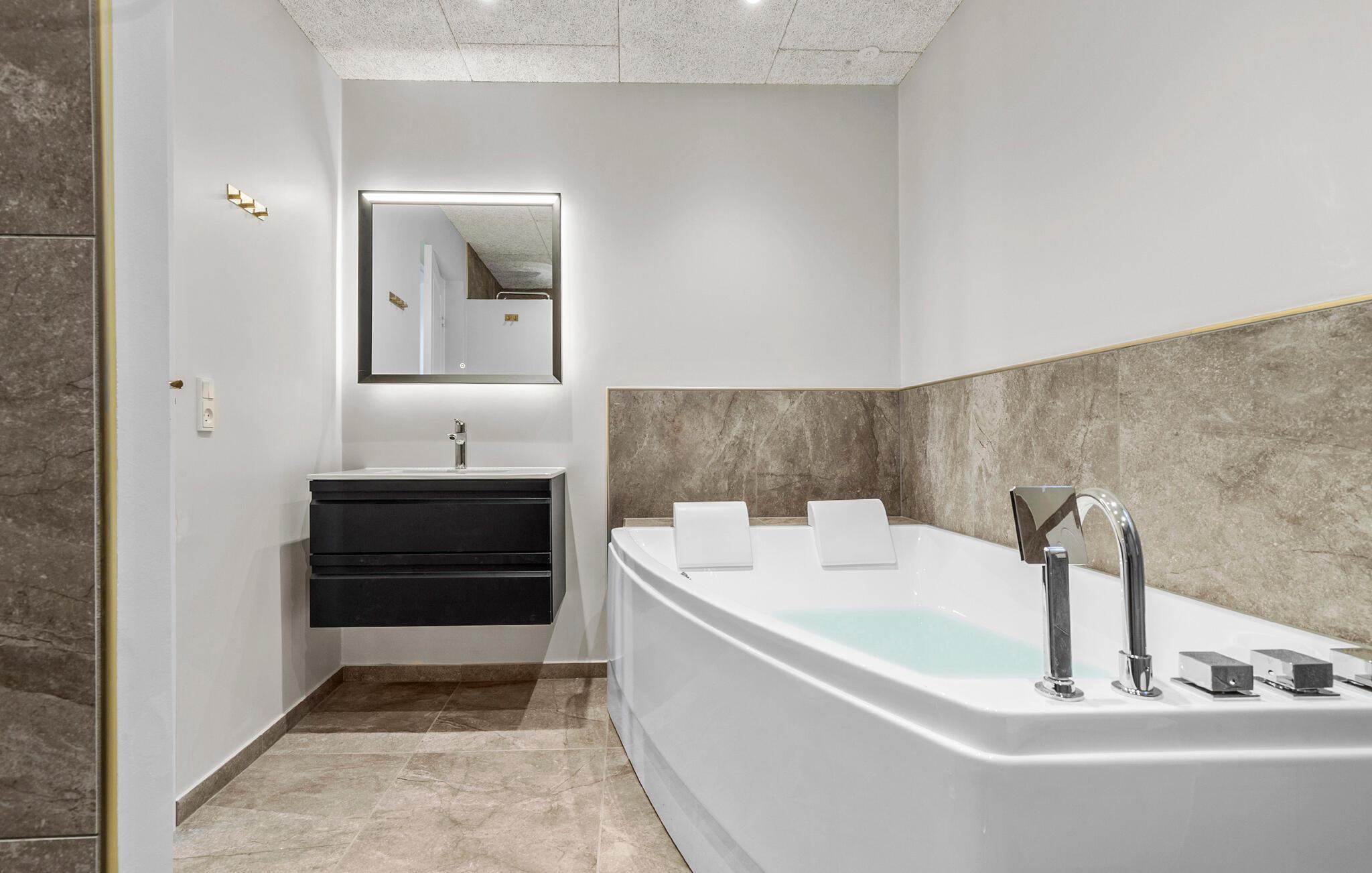 Badeværelse (nr. 1) - WC. Varmt og koldt vand. Bruser og badekar