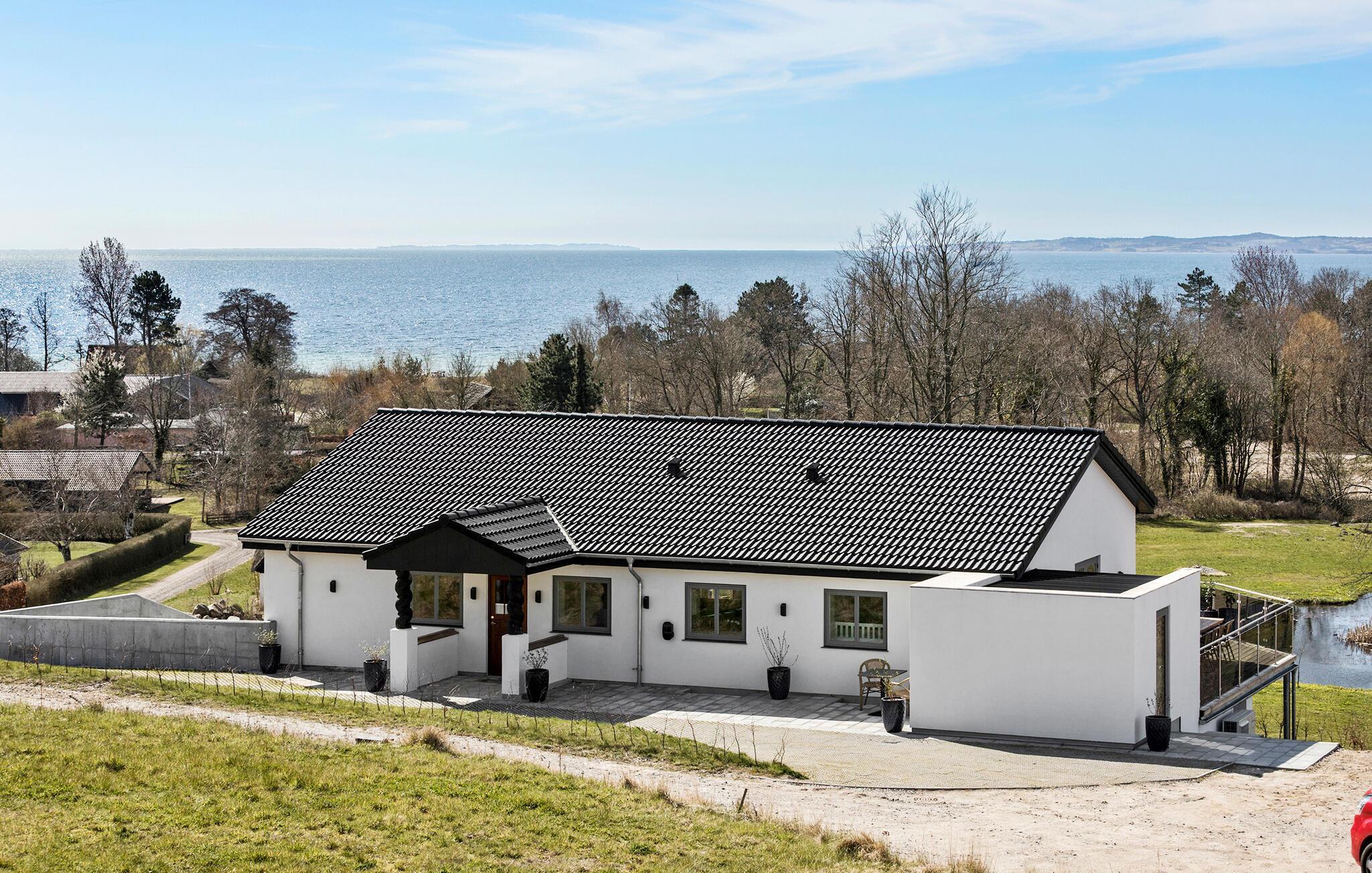Rummeligt sommerhus nær Lyngsbæk Strand med spabad, pool og smuk havudsigt, perfekt til større grupper.