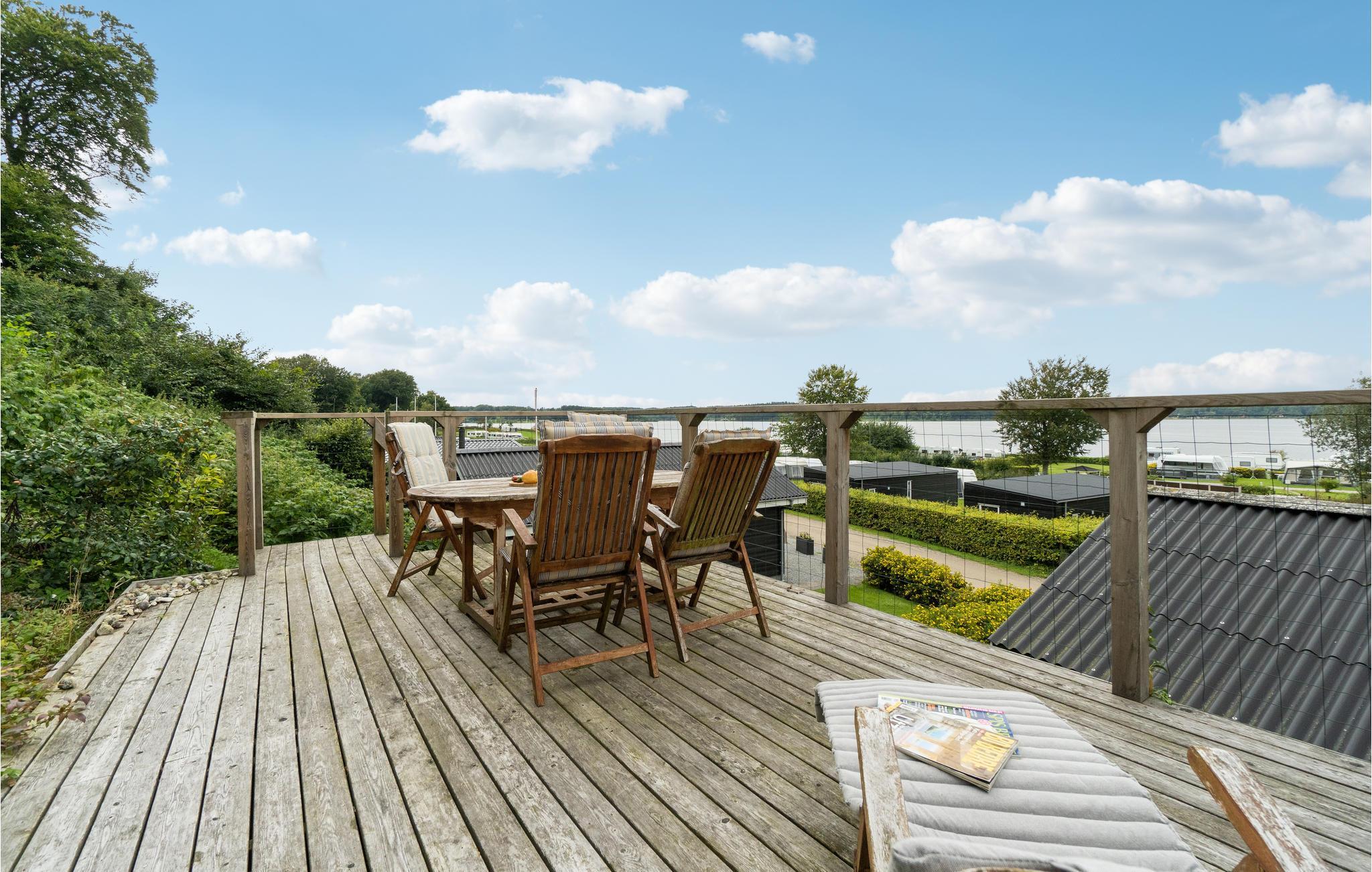 Sommerhus ved Mariager Fjord med panoramaterrasse og smuk naturudsigt.