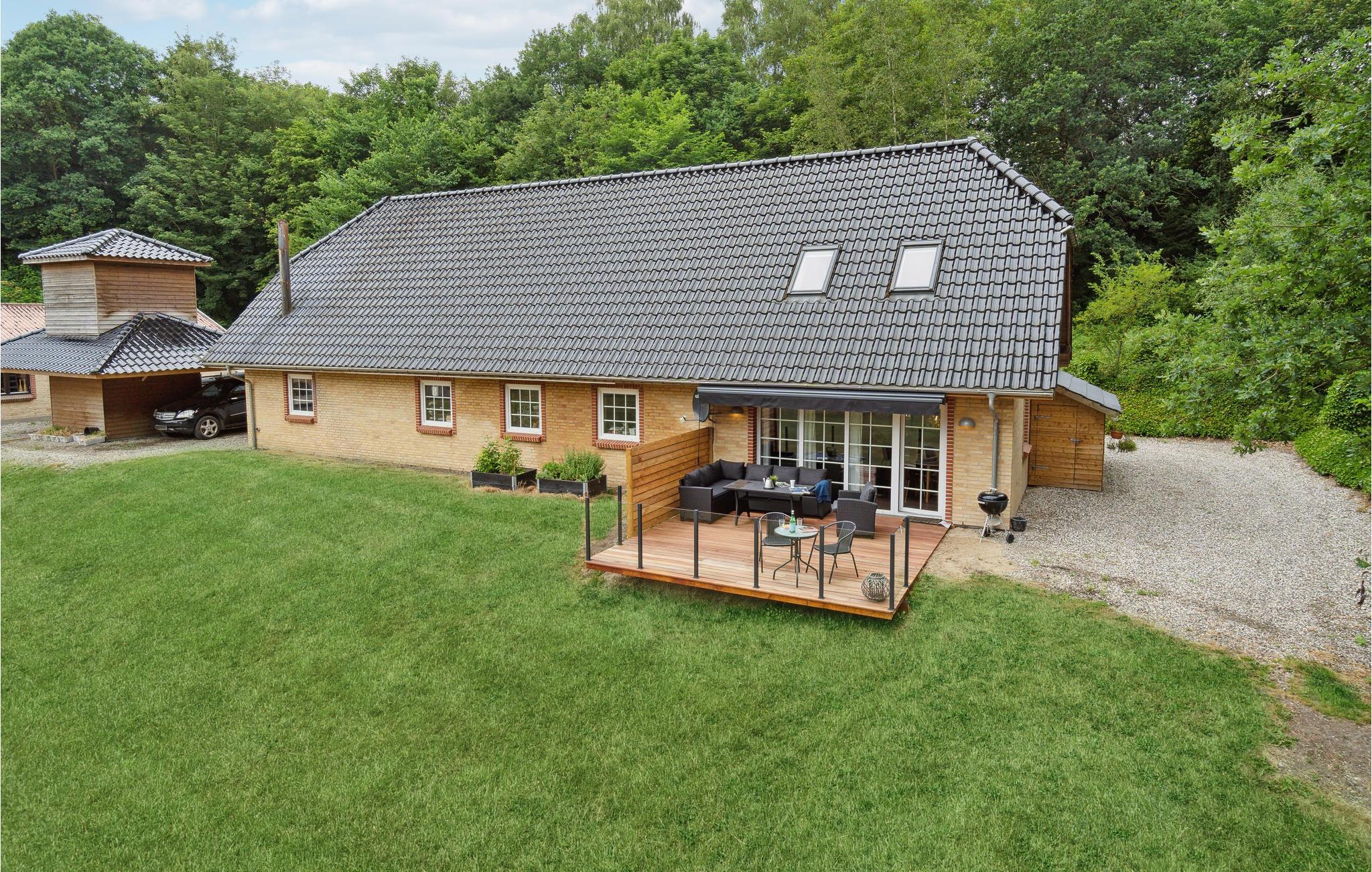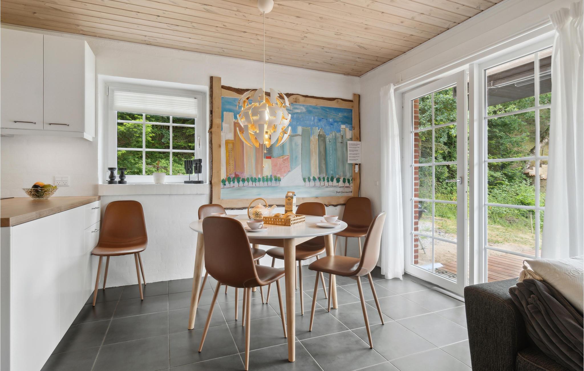 Tag en pause fra hverdagen og hold en afslappende ferie i dette indbydende hus. Det byder på moderne komfort og inviterer til afslapning på to etager. Glæd jer til de lyse værelser med behagelig indretning præget af varme farver, der skaber en hyggelig atmosfære. Nyd morgenmaden ved det runde spisebord og slut dagen af med en sjov brætspilskonkurrence. Lad børnene boltre sig i haven, mens I planlægger udflugtsprogrammet på den dejlige træterrasse. Tænd op i grillen om aftenen og nyd, at I ikke skal tidligt op. Fra huset er der ikke langt til vandet. Gå langs kreaturindhegningen ned til fjorden, hvor I kan benytte badebroen til at springe i fjordens vand eller til at kaste fiskesnøren ud.