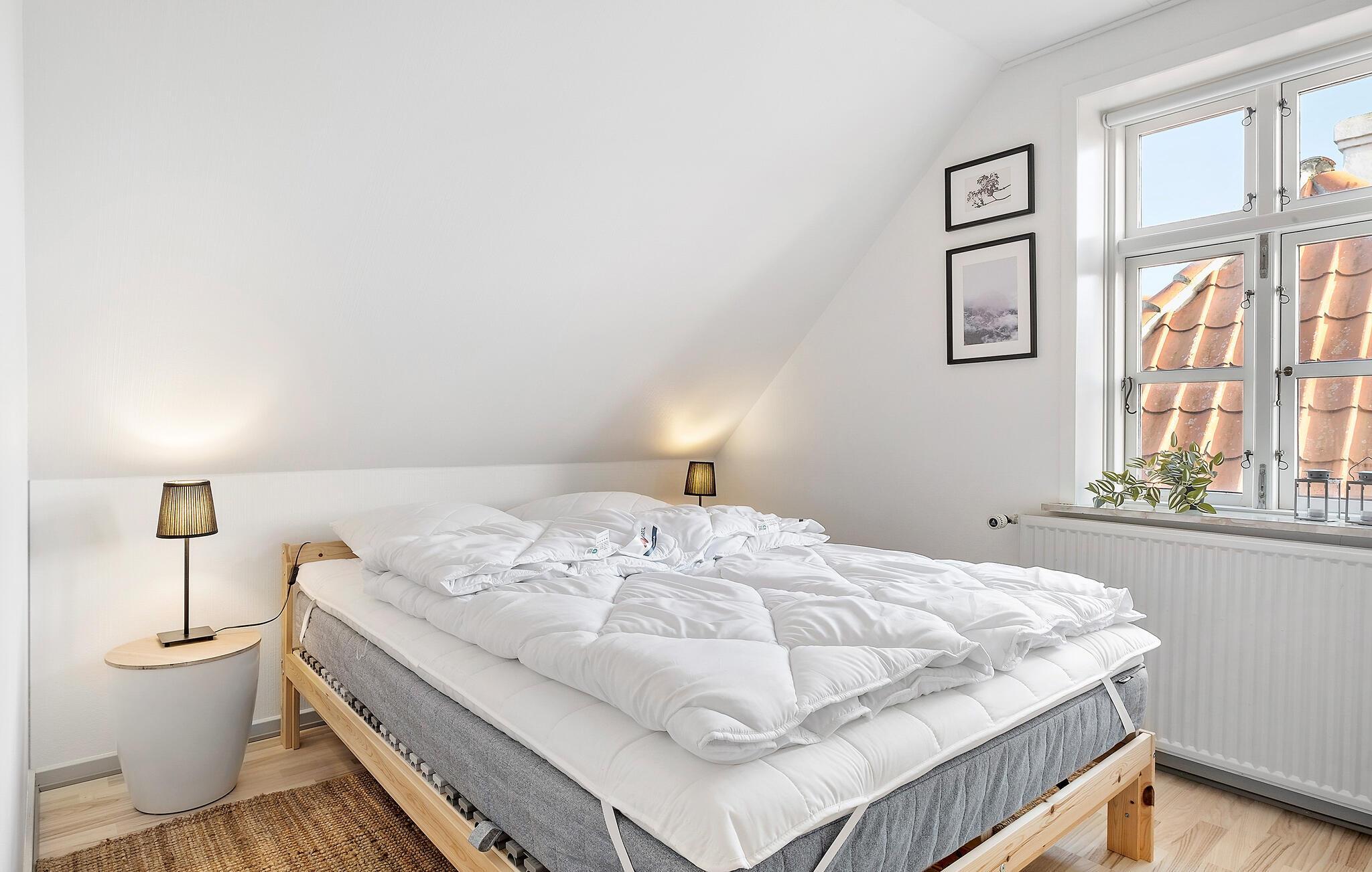Lejligheden ligger på første sal i et charmerende murstenshus og fremstår flot og indbydende. Boligen er ideel for et par eller en lille familie, og der er lagt op til en afslappende ferie i en lejlighed med en gennemtænkt planløsning og gode faciliteter, hvor I finder alt, I har brug for. Køkkenet er rummeligt og veludstyret, så I sagtens kan piske familiens livretter sammen, og bagefter kan I gøre jer det behageligt i sofaen med en god bog. Lad blot dagen starte ud med en friskbrygget morgenkaffe på altanen, mens I ser den hyggelige købstad vågne op.