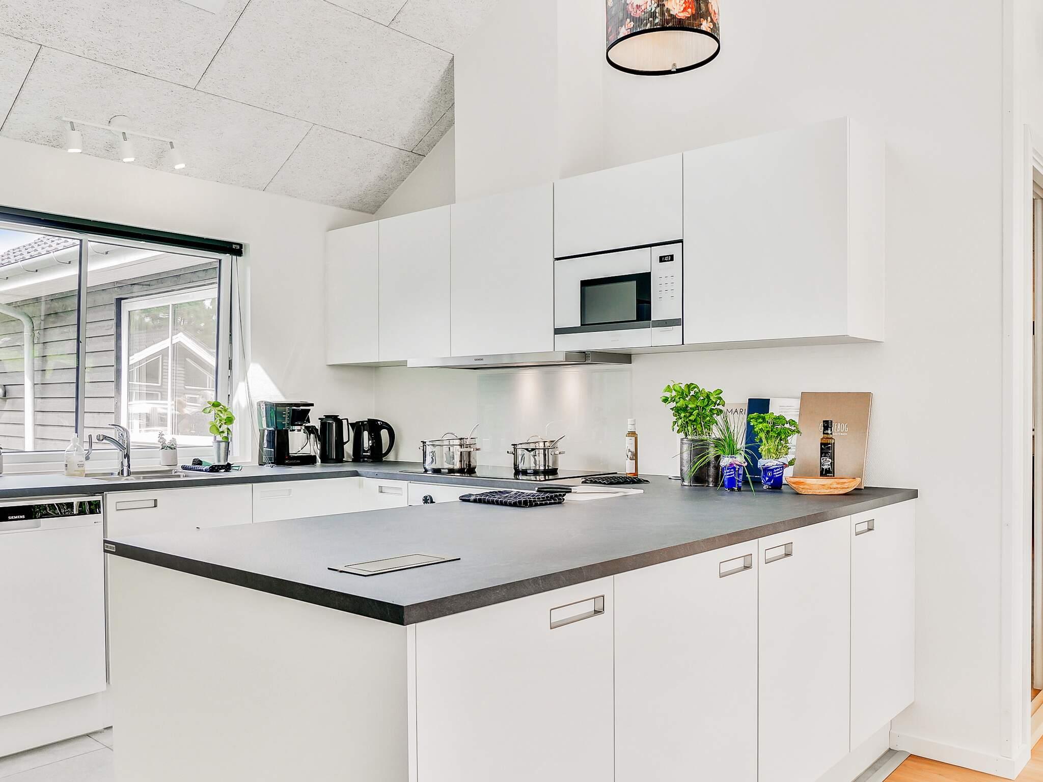 I husets midte finder I det åbne køkken/alrum. Køkkenet er veludstyret med god plads til den helt store madlavning. Foran køkkenet er der plads til alle ved det lange spisebord, så hele flokken kan nyde en fælles middag.