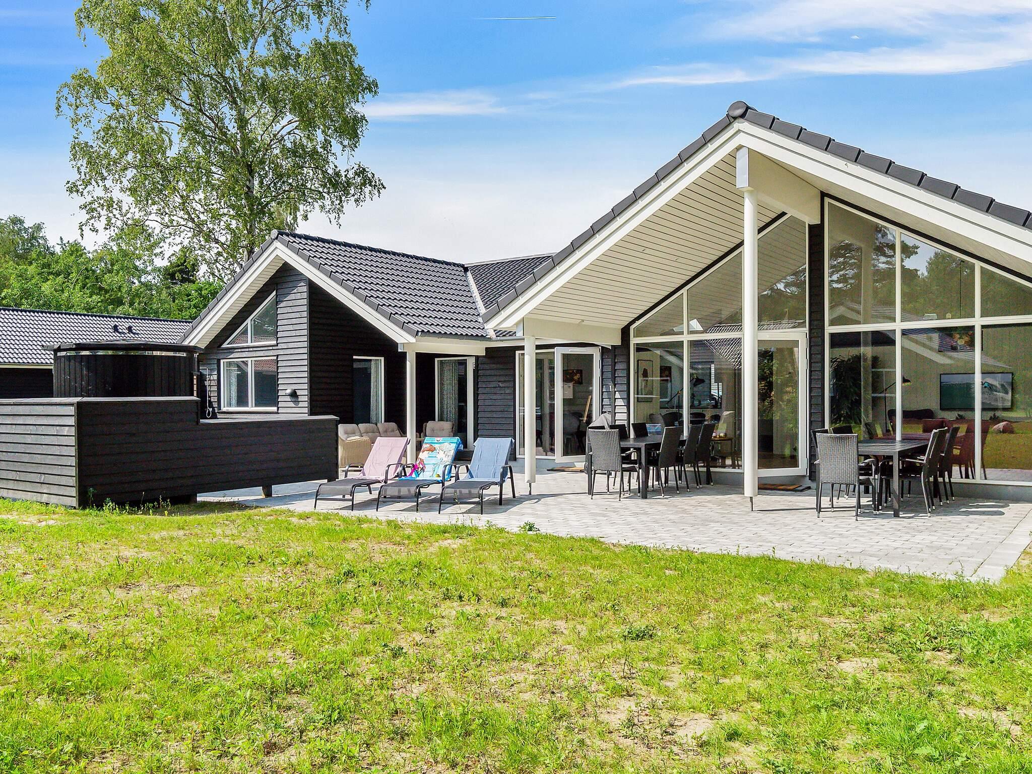 Udenfor er der også god plads til hygge og leg på den delvist overdækkede terrasse, som også indeholder havemøbler og grill. Børnene kan tillige lege i haven, som er anlagt som naturgrund, og huset har også sandkasse og egen nedgravet trampolin (benyttes på eget ansvar/forsikring). Det skal fremhæves, at ferieområdets fælleslegeplads ligger under 100 meter fra huset.