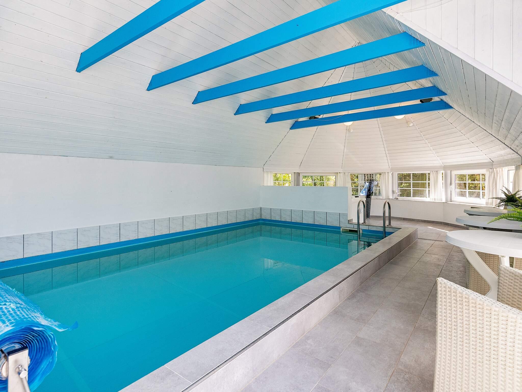 I poolafdelingen finder I en 18 m² swimmingpool, et spabad til 4 personer samt et godt badeværelse med bruseniche og gulvvarme. Der er installeret energibesparende varmepumper. Udlejes ikke til ungdomsgrupper.