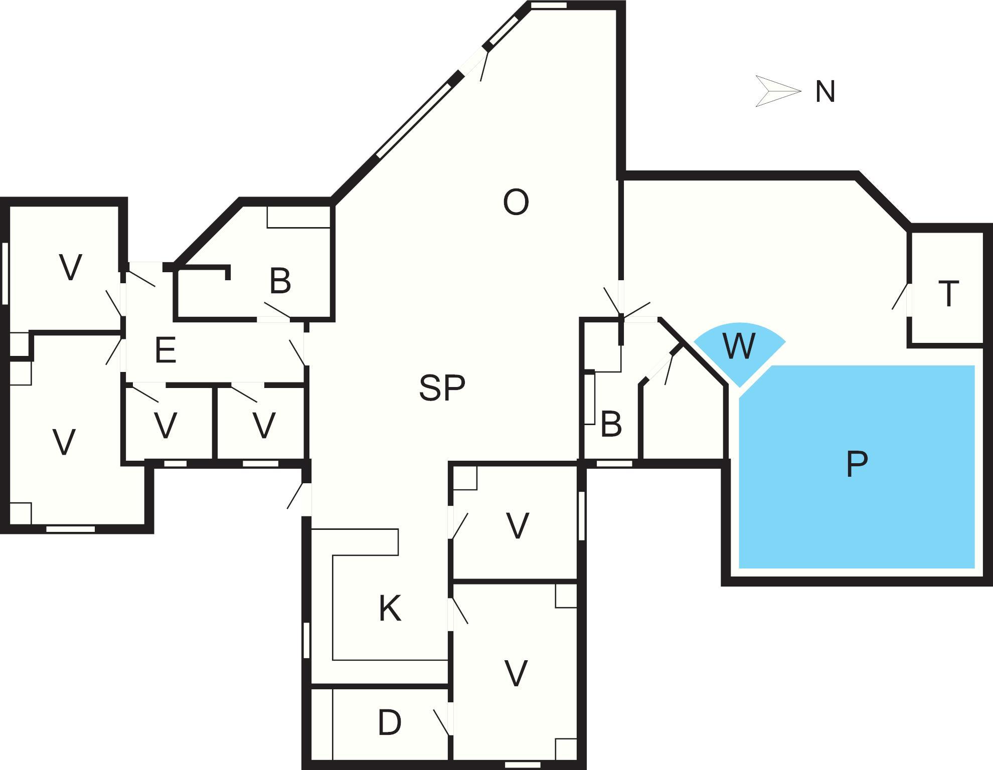6 Soveværelser: (1DS)+(1DS)+(1DS)+(1DS)+(2S)+(2K)
