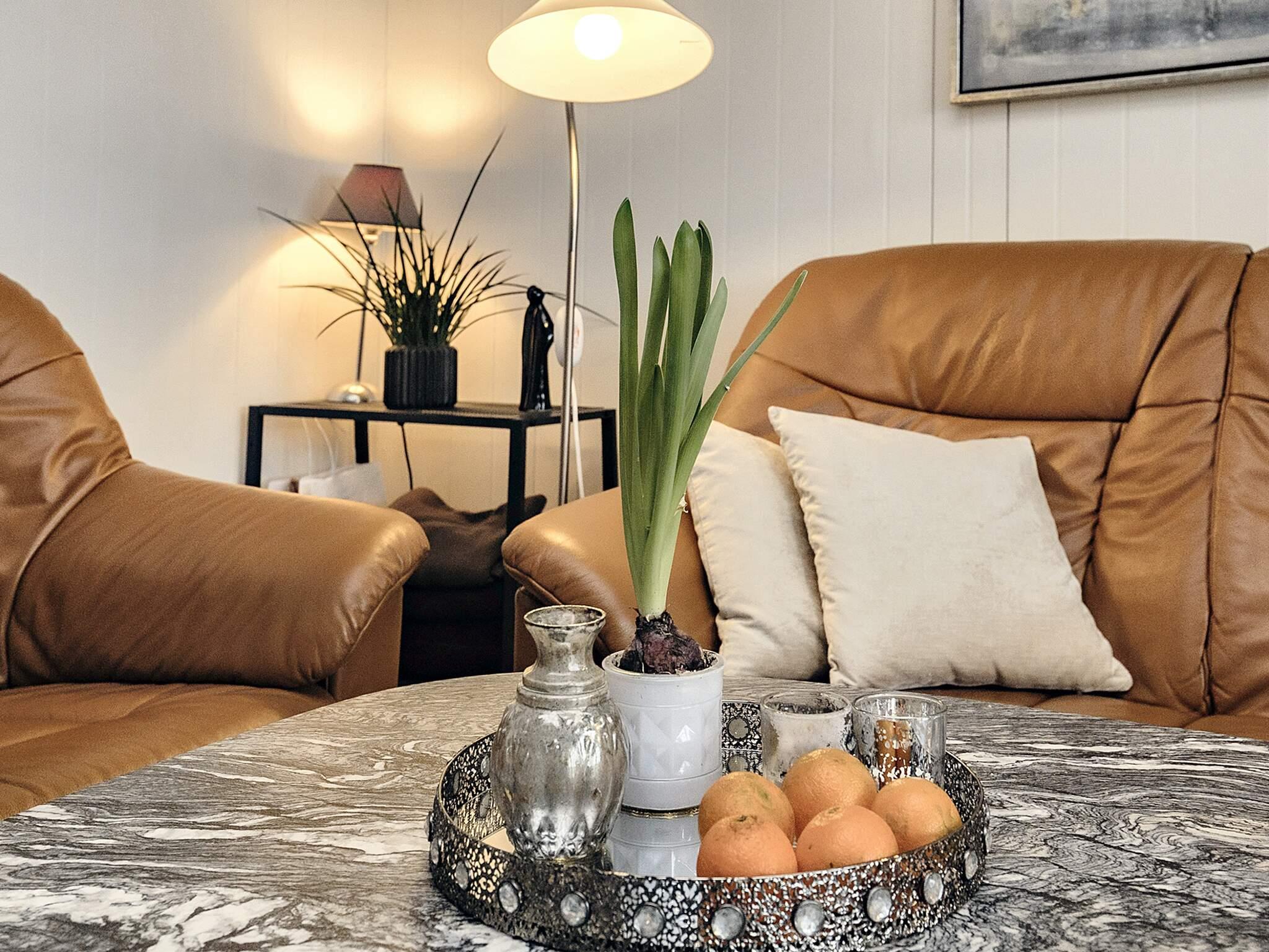 1 Opholdsstue: Brændeovn, Chromecast, tv, høj stol