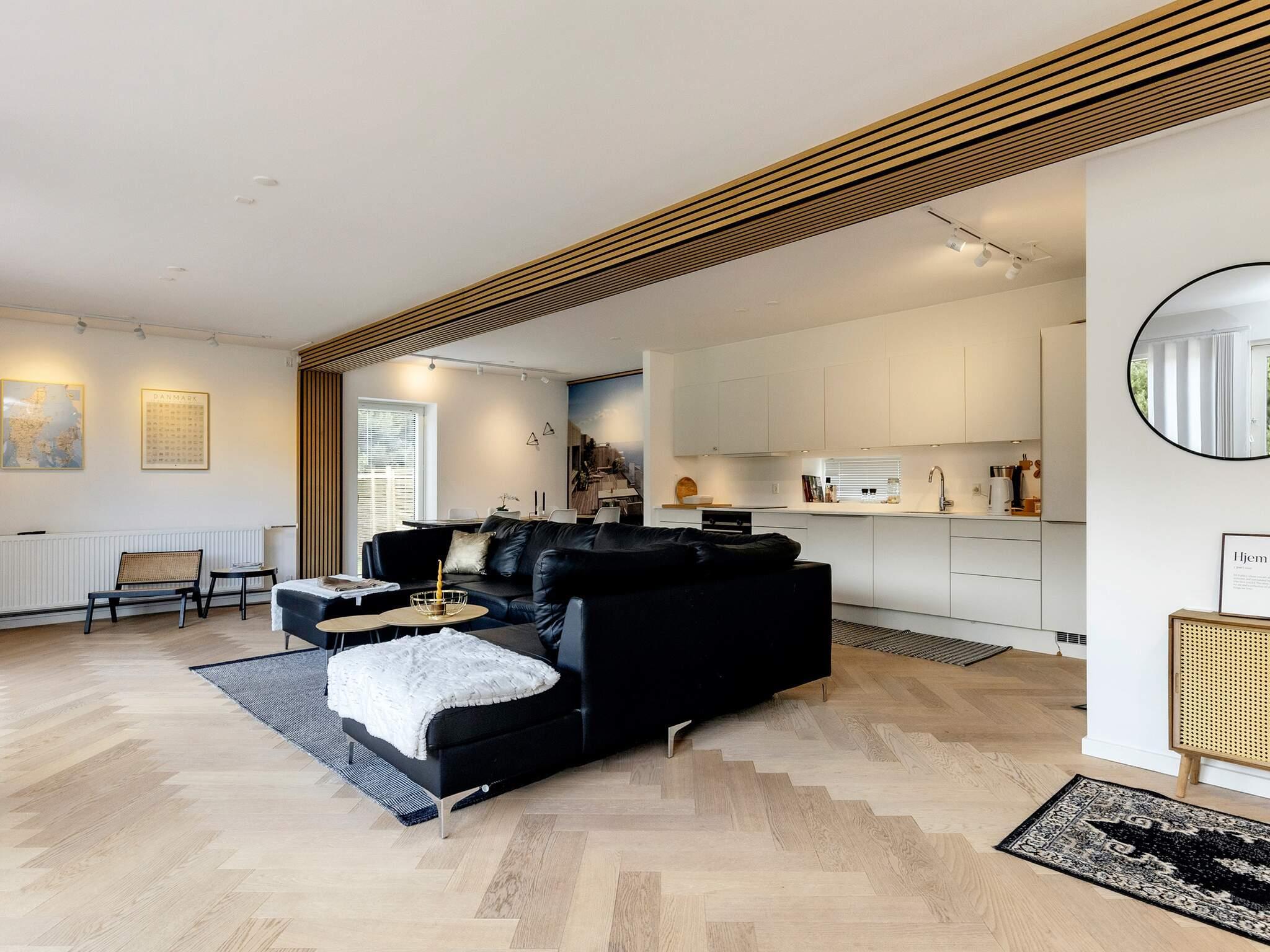 Køkken: Køle-frys, induktionskomfur, kaffemaskine, opvaskemask.
