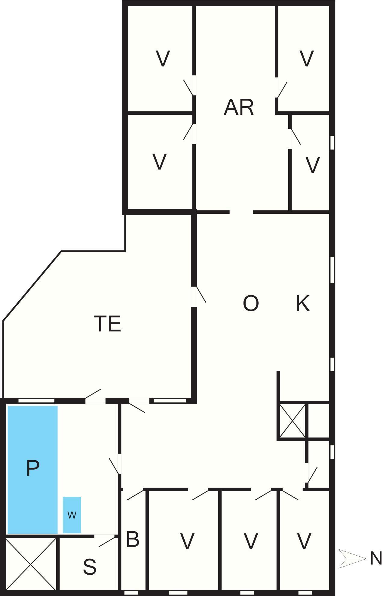 7 Soveværelser: (1DS)+(1DS)+(1DS)+(1DS)+(2S)+(2S)+(4K), barneseng