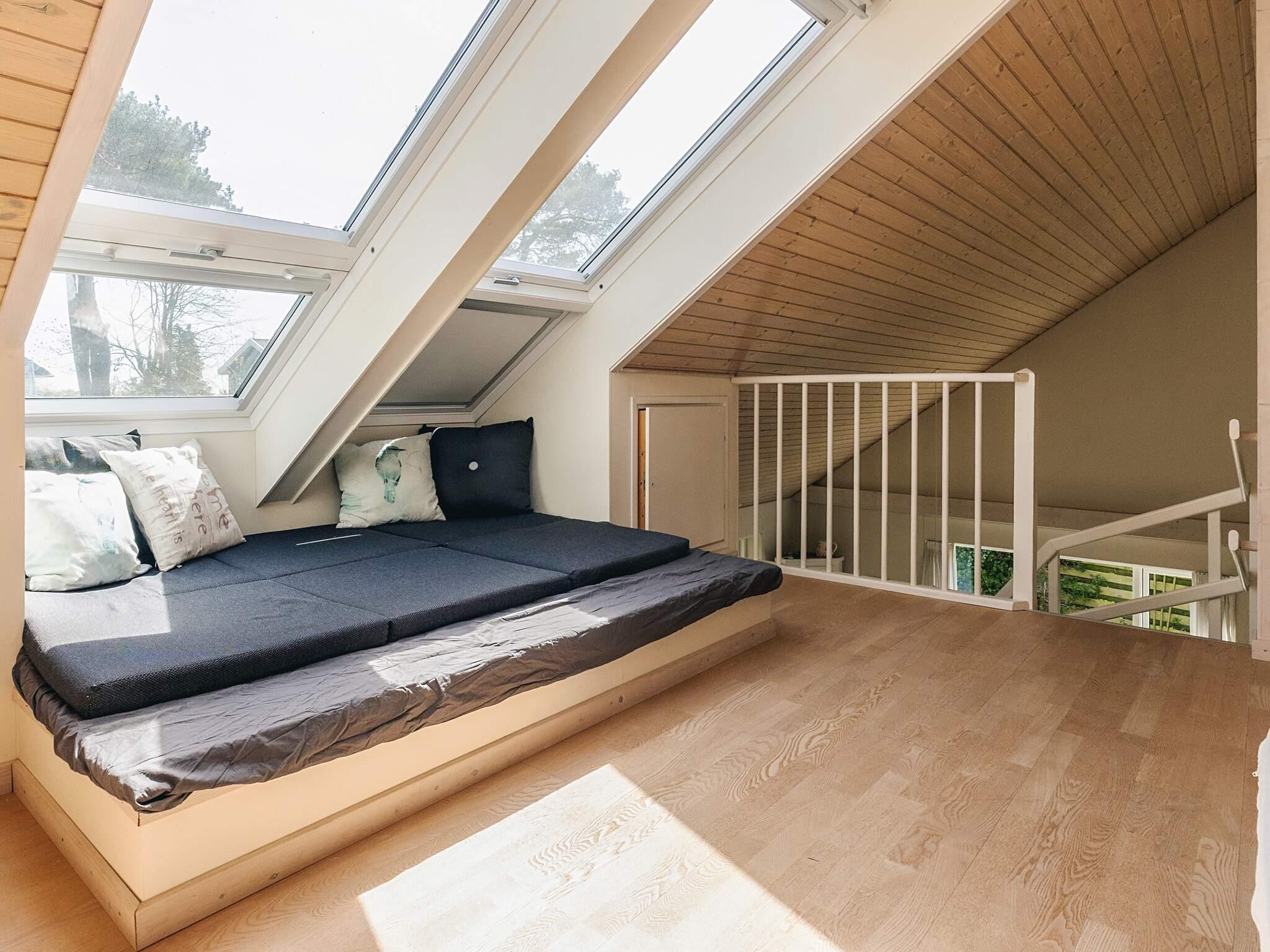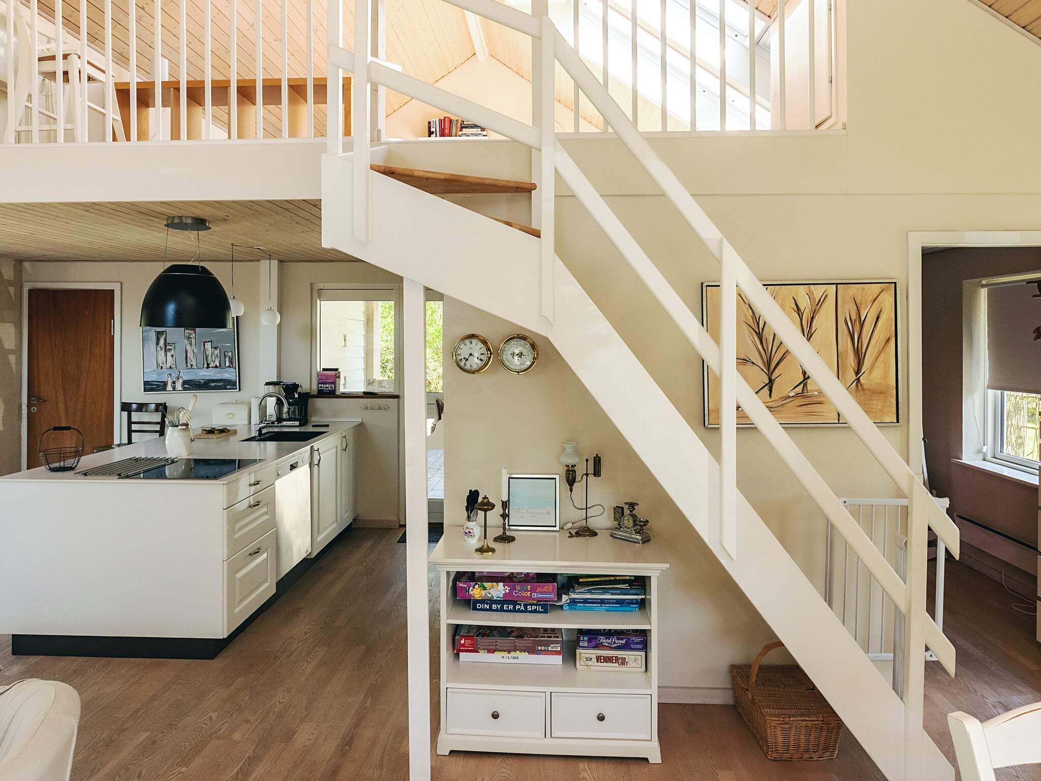 Sommerhuset har soveværelse med brandbilkøjeseng og tv med Chromecast og dvd-afspiller, og der er dobbeltseng på den store hems. Der er en dobbeltseng i annekset. Sommerhusets badeværelse er udstyret med toilet, håndvask og bruser.
