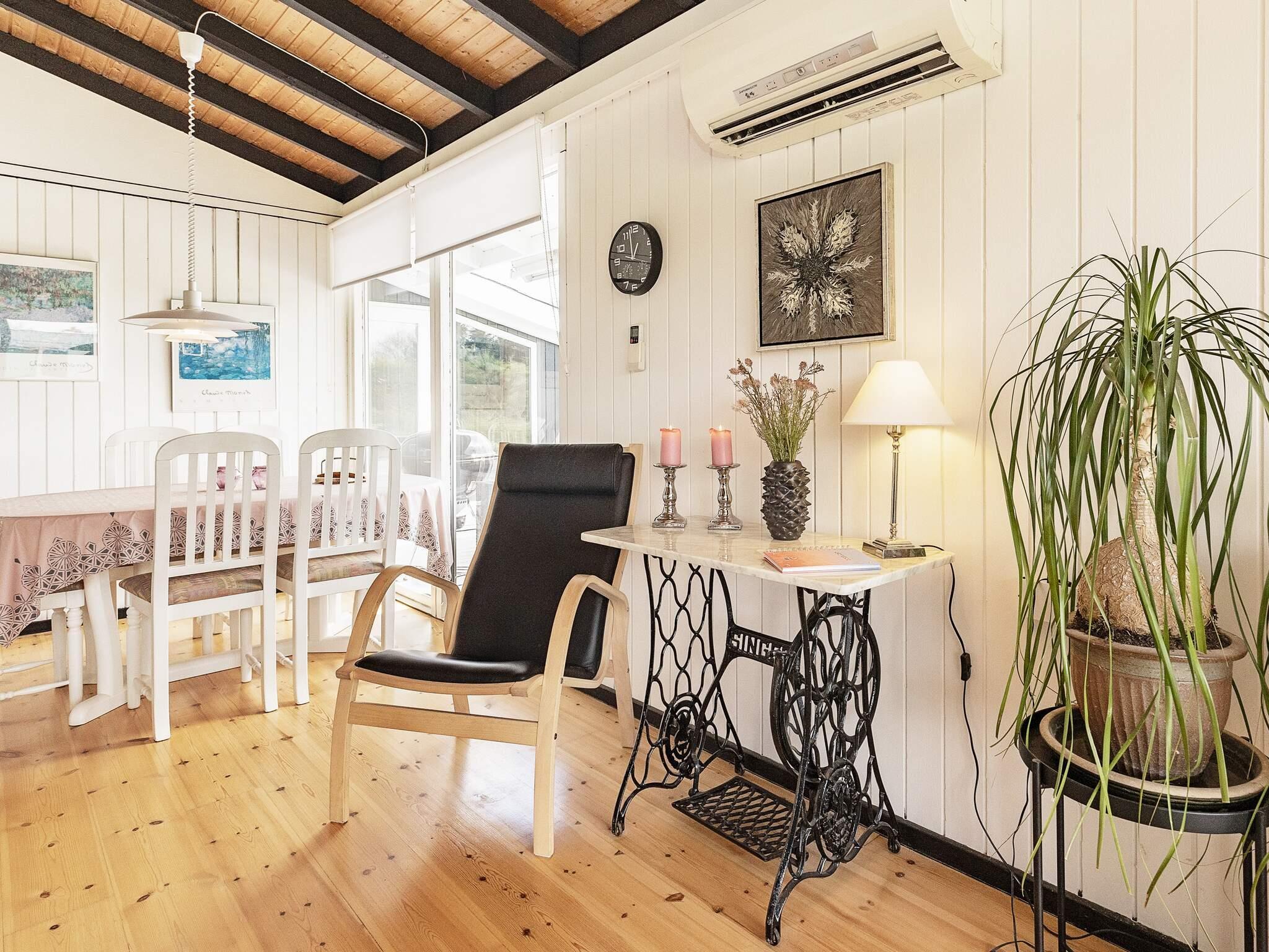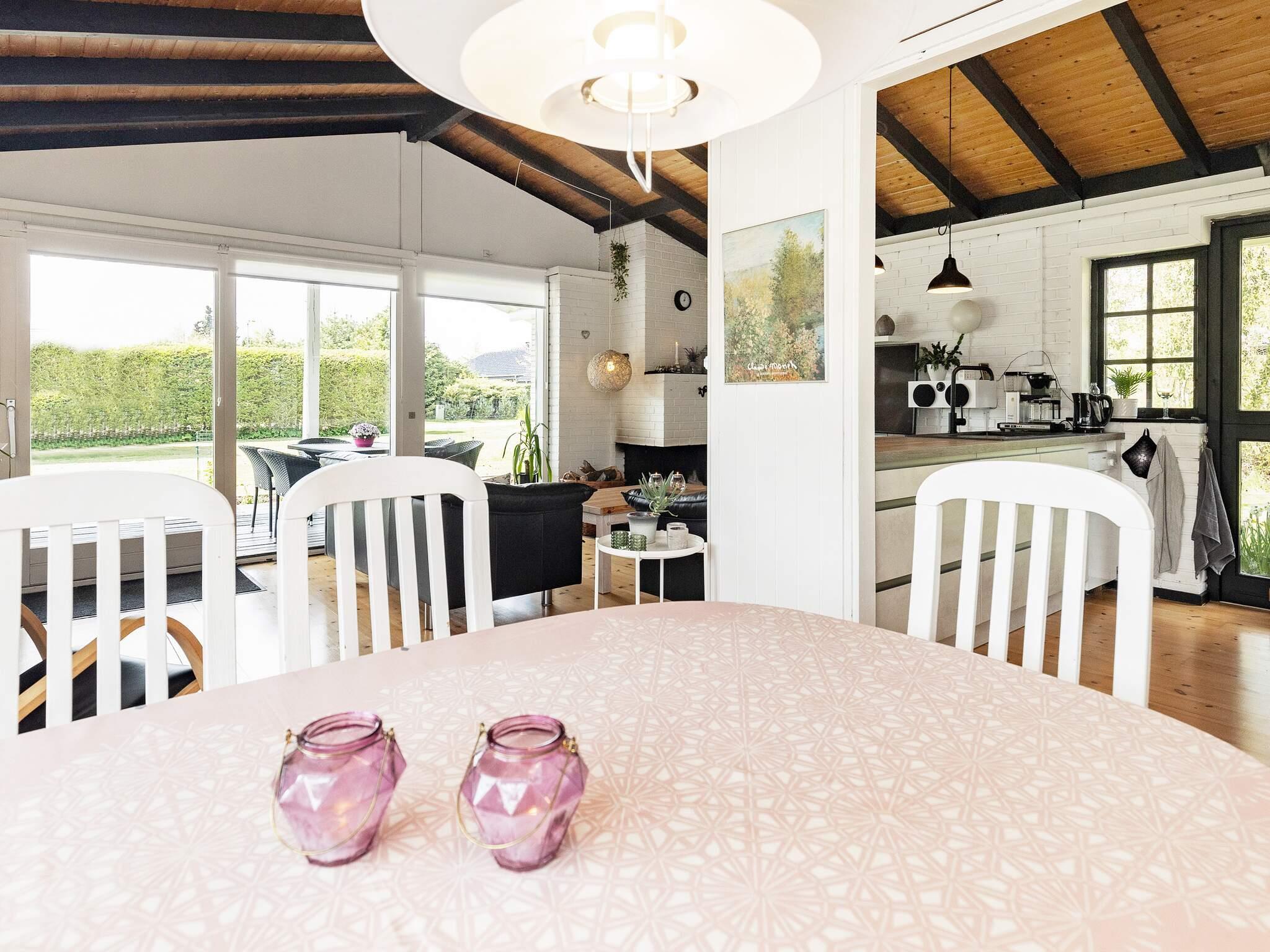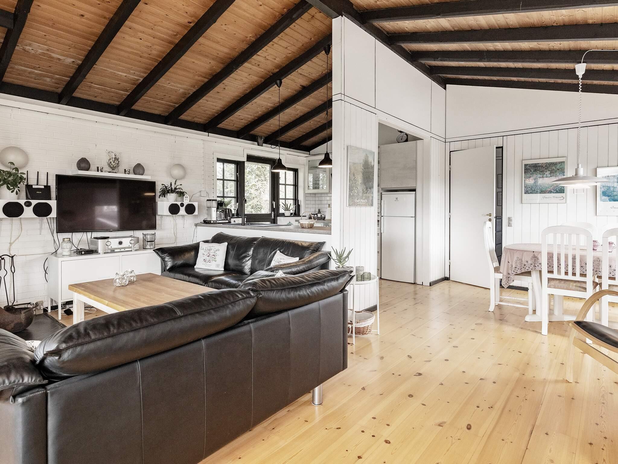 Sommerhuset er moderne indrettet med åbent køkken med bl.a. keramiske kogeplader, separat ovn, emhætte, mikroovn og opvaskemaskine. Stuen er lys og venlig med hyggelige møbler, tv, radio og gratis trådløst internet. Tre gode soveværelser.