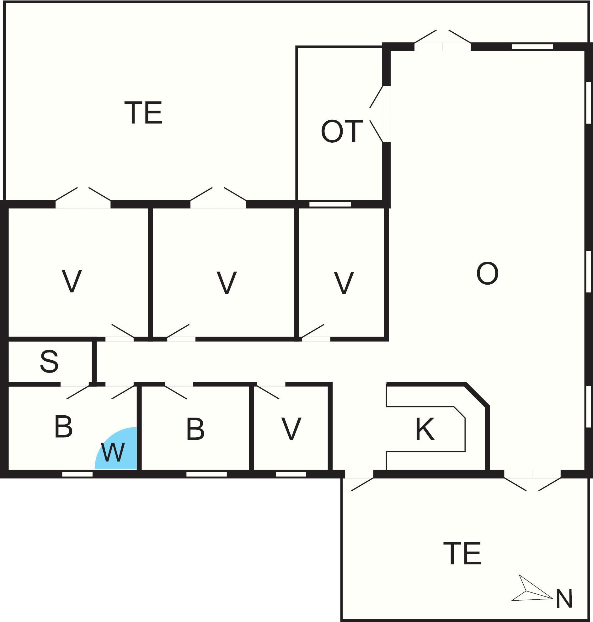 4 Soveværelser: (2S)+(2S)+(2K)+(1DO)