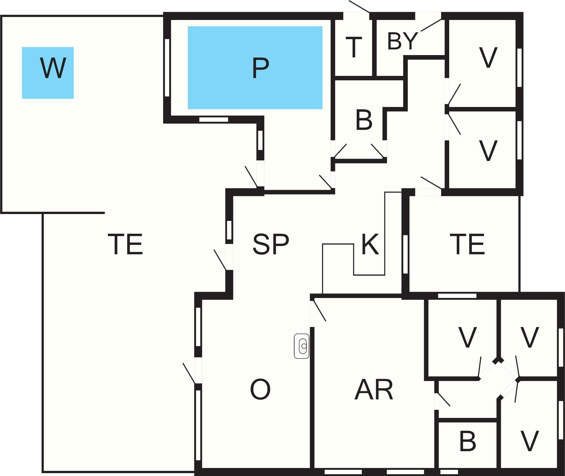 Uanset årstid findes der i dette sommerhus ingen undskyldning for, at badeturen ikke er sikret, da sommerhuset er udstyret med en lækker pool. Poolen måler 14 m2 og er udstyret med en romersk trappe samt et modstrømsanlæg. Følelsen af luksus og wellness er total, da I på terrassen finder husets lækre udendørs spabad samt en udendørs sauna omgivet af natur (og stjernehimmel).
