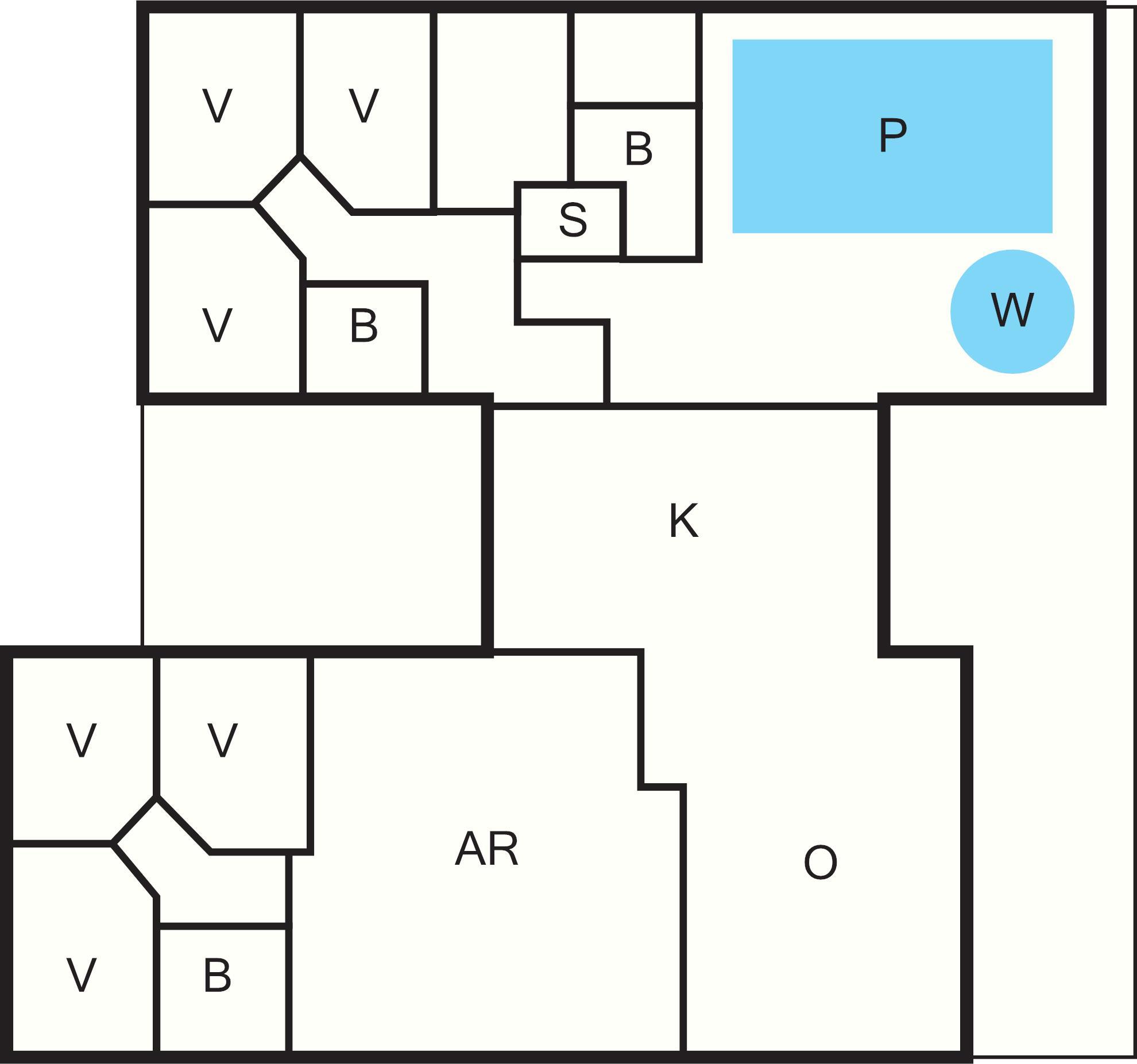 For familiens vandglade gæster byder huset på sin egen private pool på hele 18 m². Poolen er udstyret med modstrømsanlæg, så både børn og voksne kan få motion i vandet, mens rutsjebanen uden tvivl bliver et hit hos de yngste. Trænger kroppen til ren afslapning, kan I nyde den varme sauna eller forkæle jer selv i det store, boblende spabad.