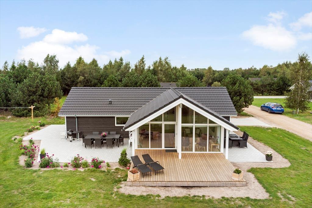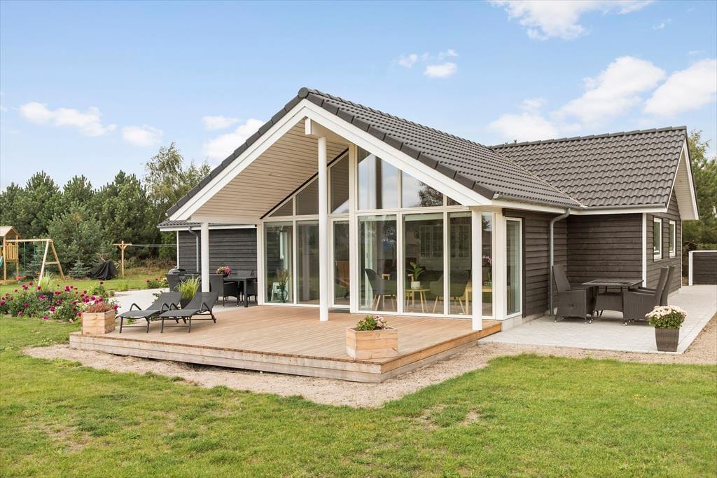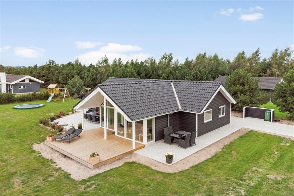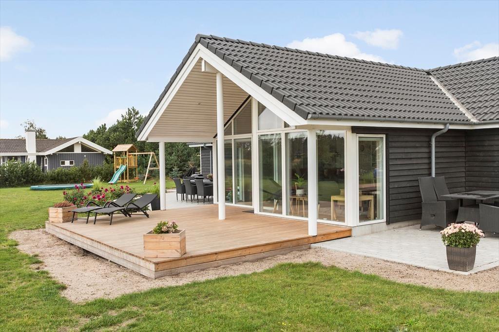 Med en rigtig dejlig delvis overdækket træterrasse med havemøbler og grill, en skøn have med masser af plads til boldspil og leg har dette hus alt hvad der behøves for en god ferie med hele familien. Derudover er der nybygget legetårn, samt trampolin i feriehuset.