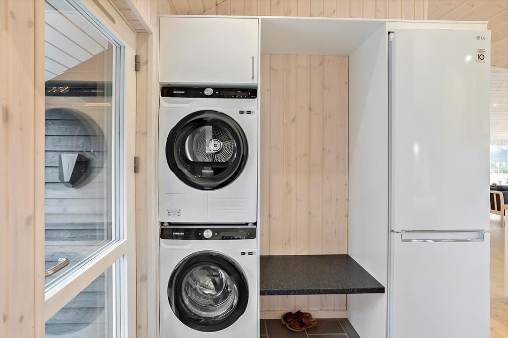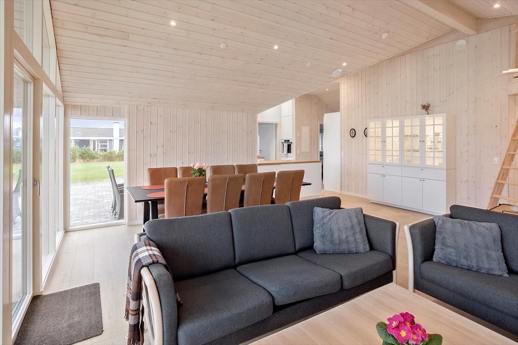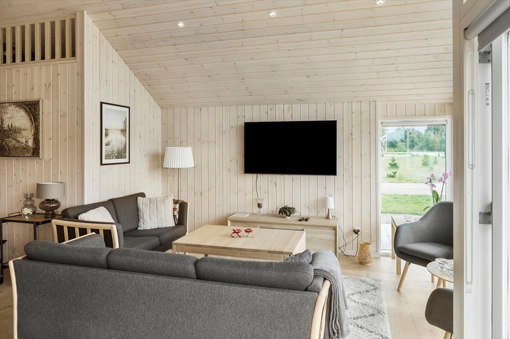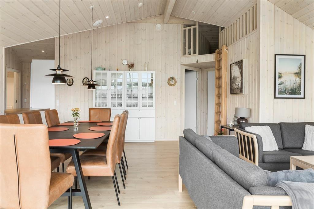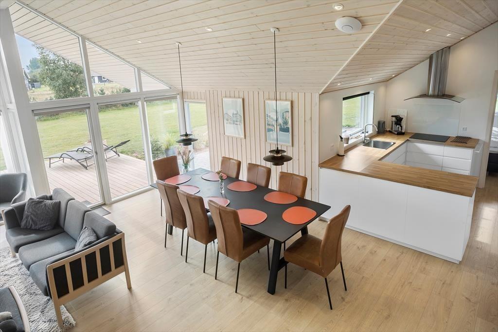 Skønt fritidshus på en flot grund, indrettet i lyse og indbydende farver overalt indvendigt, og byder på et moderne åbent køkken, med køleskab med fryser, ovn, kogeplader, mikroovn og meget mere.