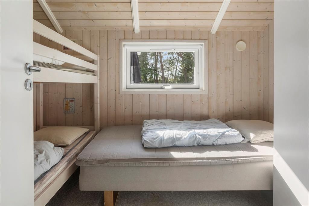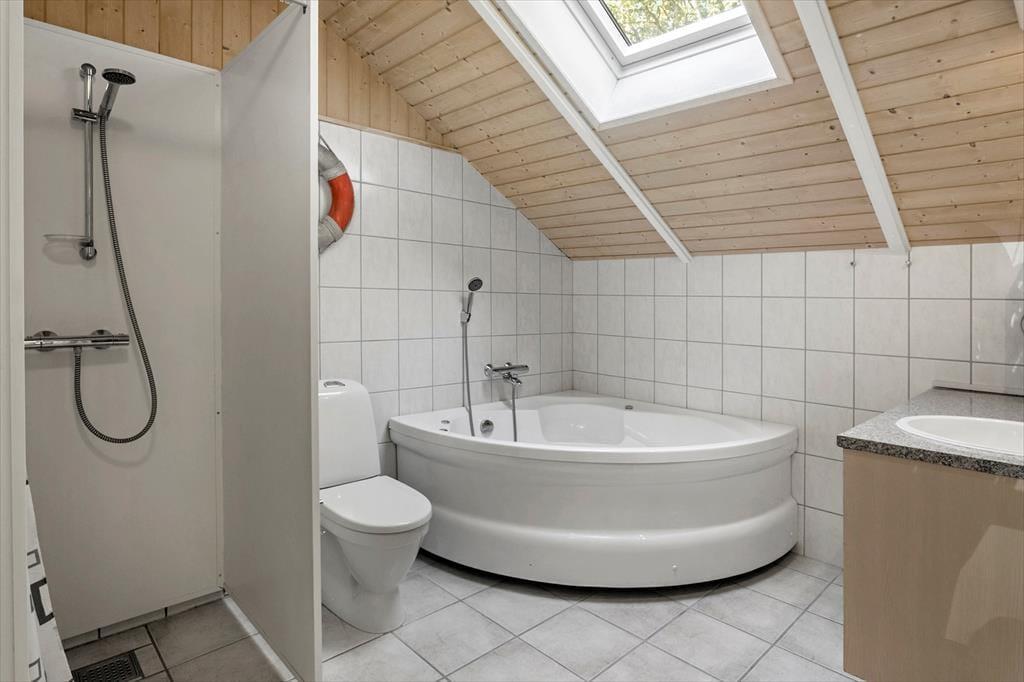 Her finder I en rummelig entré med både vaskemaskine og tørretumbler, fire velindrettede soveværelser – tre med dobbeltsenge og ét med to enkeltsenge – så der er god plads til alle. De to badeværelser gør hverdagen nem, og det ene byder endda på både spabad og sauna – perfekt til ren afslapning efter en dag ved stranden.