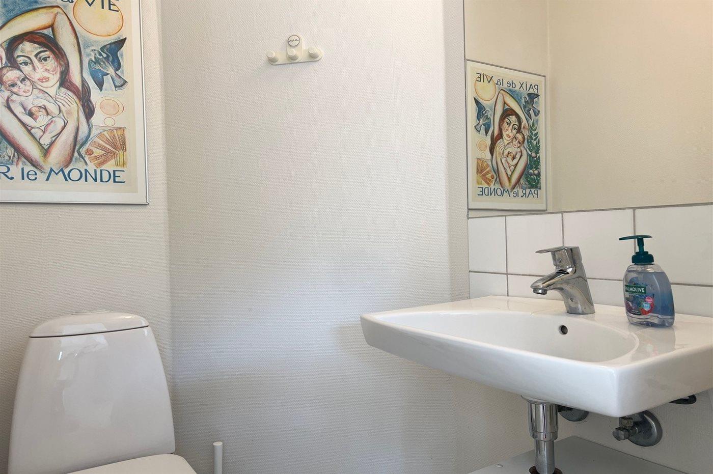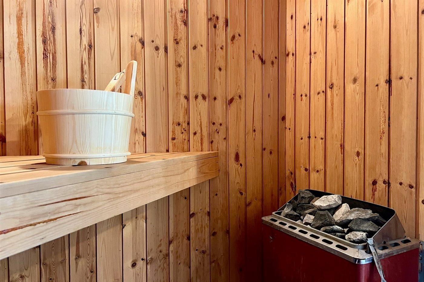 Der er 1 badeværelse med bruser og 2 toiletter, heraf 1 gæstetoilet. Der er gulvvarme på 1 badeværelse.. Badekar. I saunaen er der mulighed for afslapning.