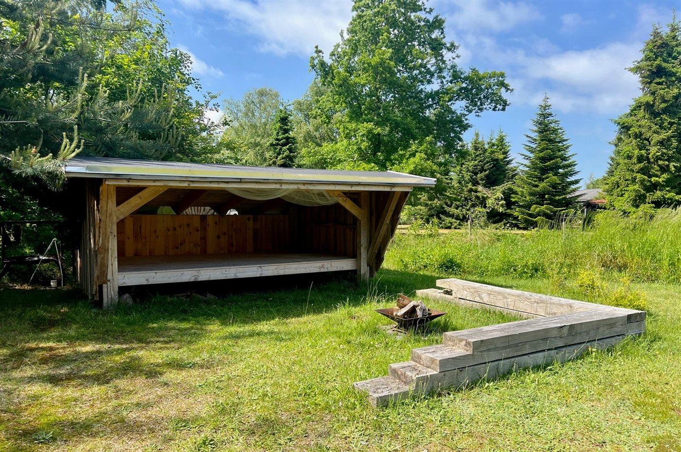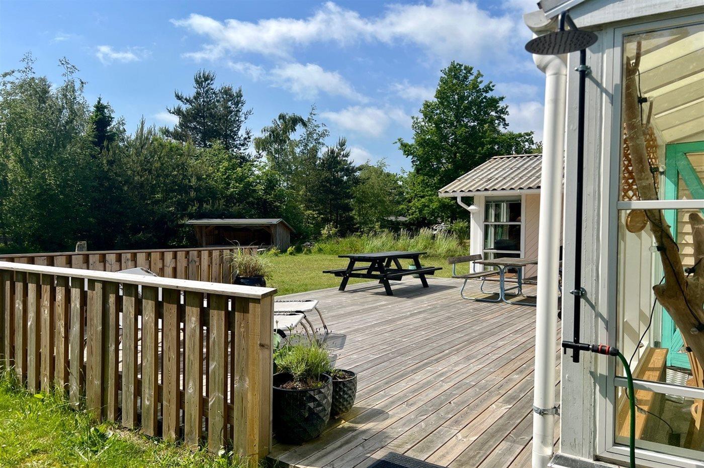 Ferieboligen er beliggende på en 1233 m² stor naturgrund. Der er 800 m til havet. Nærmeste forretning er beliggende i en afstand af 2100 m. Til ferieboligen hører 50 m² terrasseareal. Ligeledes er der adgang til udestue. Der er redskabsrum. Legehus. Shelter. Parkering ved ferieboligen.