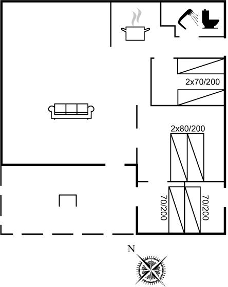 Der er i alt 4 soveværelser. Sovepladserne fordeler sig på: 2 sovepladser i dobbeltseng. 4 sovepladser i enkeltsenge.