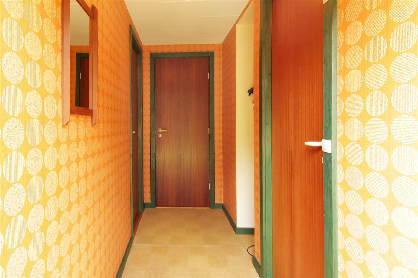 Hyggeligt sommerhus i oprindelig stil på lukket grund nær børnevenlig strand og med overdækket terrasse.