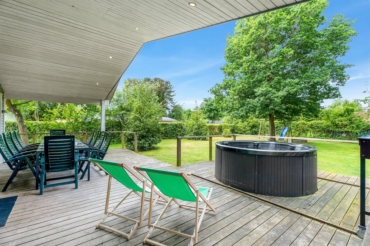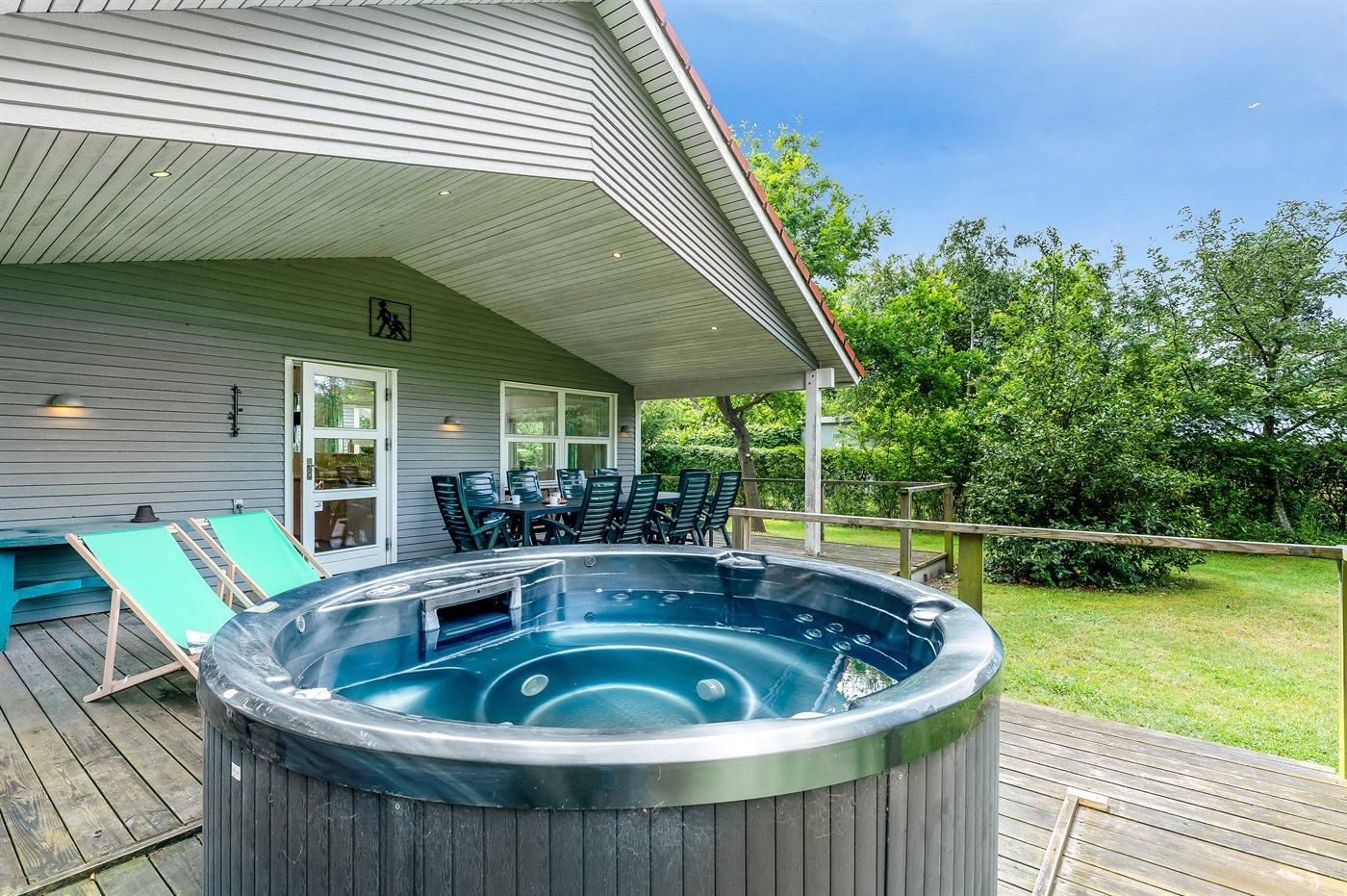 Et moderne sommerhus i træ, bygget i 2000, med både indendørs og udendørs spa, beliggende på naturgrund kun 100 m fra Danmarks bedste sandbadestrand. Til huset hører et dejligt åbent og overdækket terrasseareal med diverse havemøbler og en stor udendørs standvandsspa til 6 personer, som hele året er opvarmet til 38 grader. Spaen kan derfor nydes såvel en stjerneklar aften som en frostklar vinterdag.
