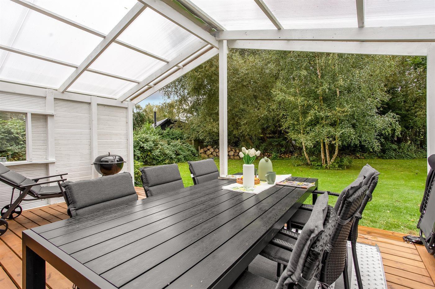 Til huset hører den skønneste træterrasse, som er delvist overdækket, og hvor der findes havemøbler, solvogne og grill. Her kan du tilbringe timer i det fri med en god bog eller strikketøjet – også selvom vejret ikke viser sig fra sin bedste side.