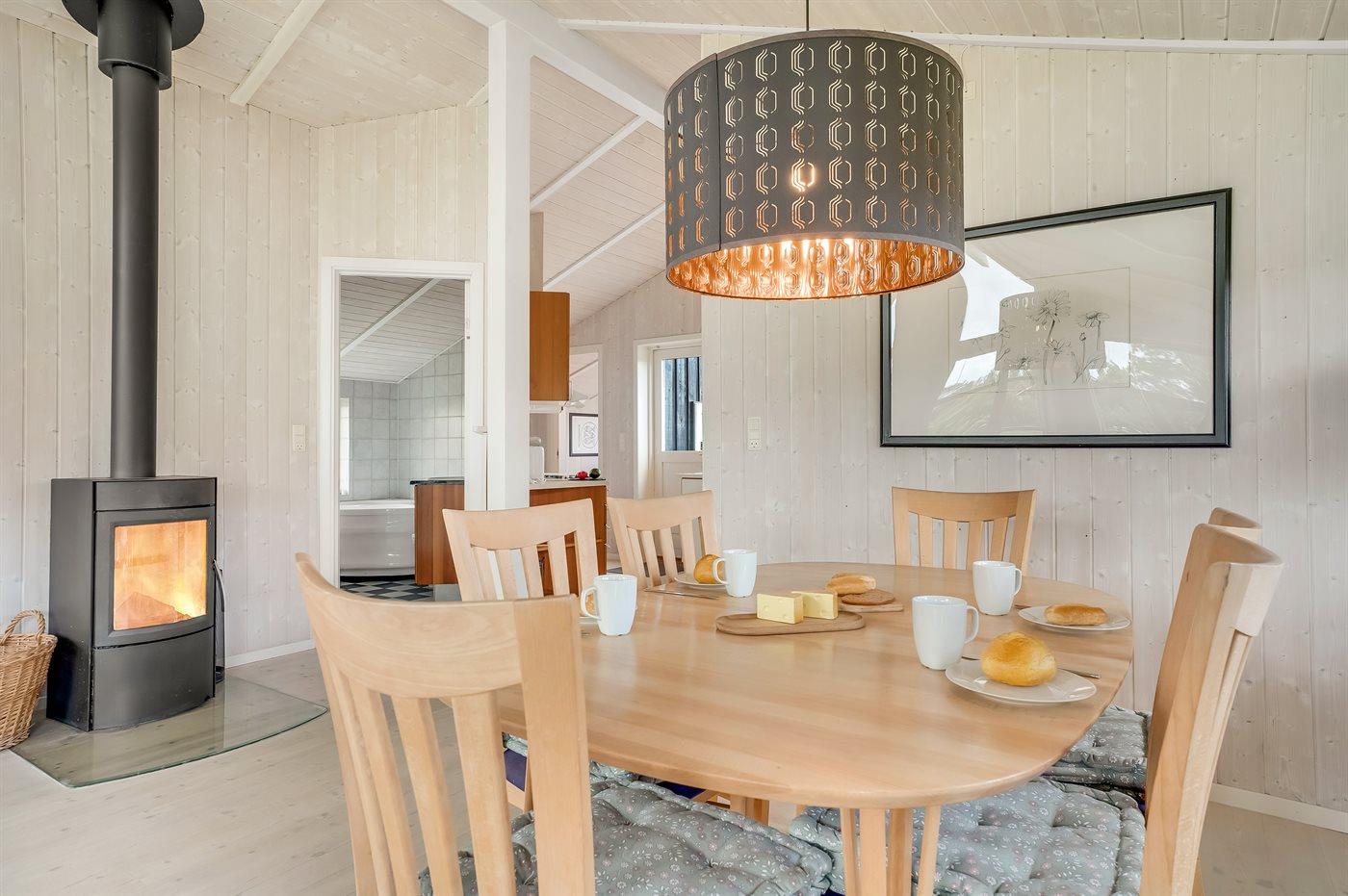 Centralt i huset finder I en hyggelig brændeovn, hvilket giver en behagelig varme under hele opholdet. Er det om sommeren I holder ferie, er huset udstyret med en overdækket terrasse, hvortil der er stor Webergrill, og et komplet havesæt i afslappet stil. Huset er fra 2007 og har i 2014 fået en grundig gennemgang af alt husets materiel. I den rummelige stue, er der ophængt et 47" widescreen TV med indbygget Smart-TV. Desuden står Playstation2 til rådighed samt gratis trådløs internetforbindelse. Gulvene er belagte med lyst træ. På badeværelset findes gulvvarme, bruseniche, 2 pers. spa og direkte adgang til en hyggelig sauna. Ligeledes er der vaskemaskine og tørretumbler. I køkkenet er der alt, hvad I skal bruge såsom mikrobølgeovn, varmluftsovn, køle/fryseskab, opvaskemaskine samt komfur med keramiske kogeplader. Alle 3 soveværelser er udstyret med kunst på væggene, natlamper og dobbeltsenge. Til de små feriegæster står barnestol til rådighed.