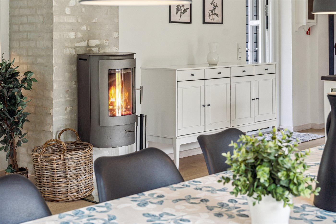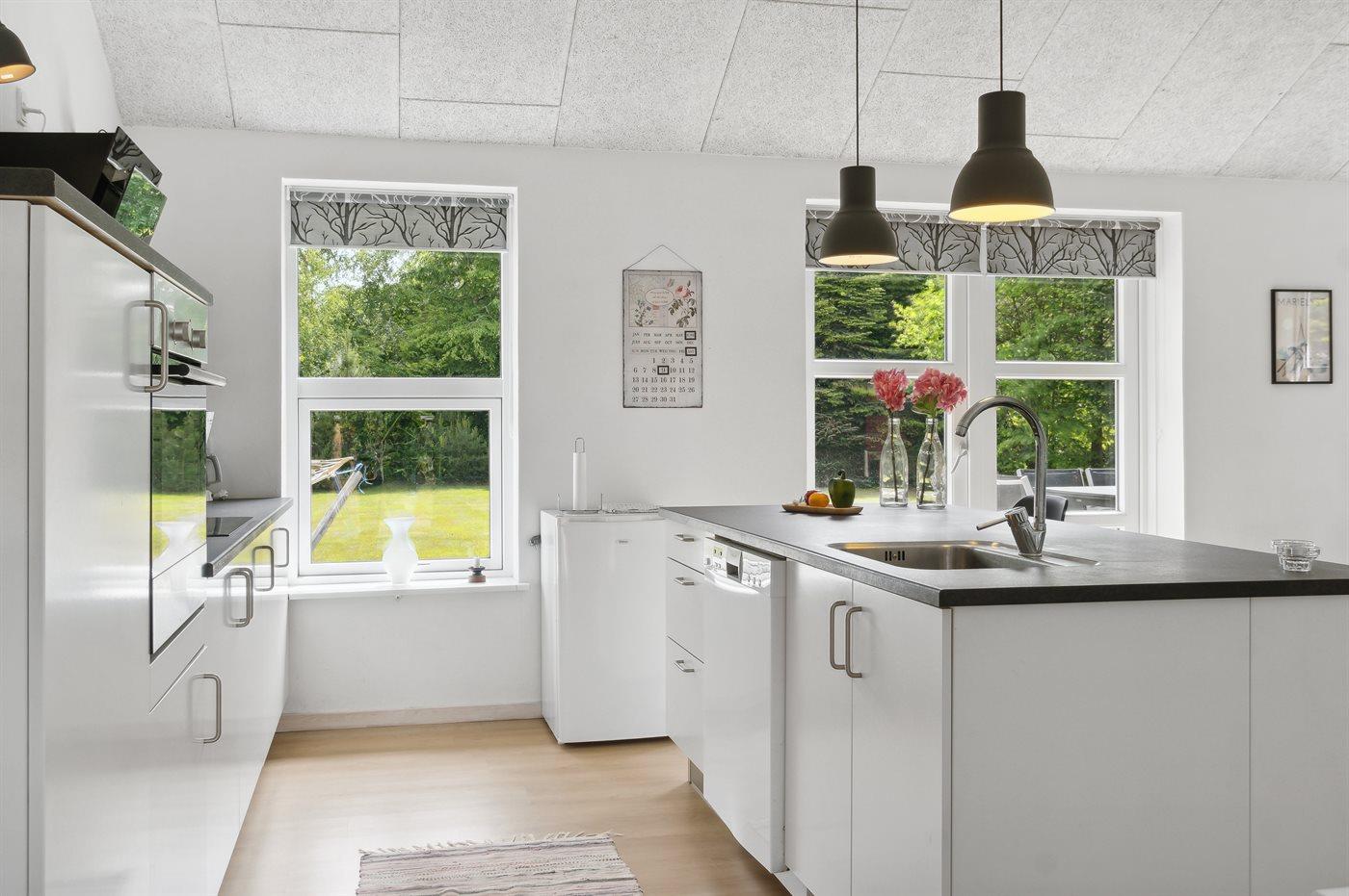 Køkkenet er udstyret med 1 køleskab. Der er 4 keramiske kogeplader, varmluftovn samt opvaskemaskine.