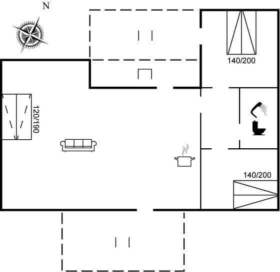 Bemærk: 2 sovepladser befinder sig på dobbelt sovesofa i opholdsstuen.
