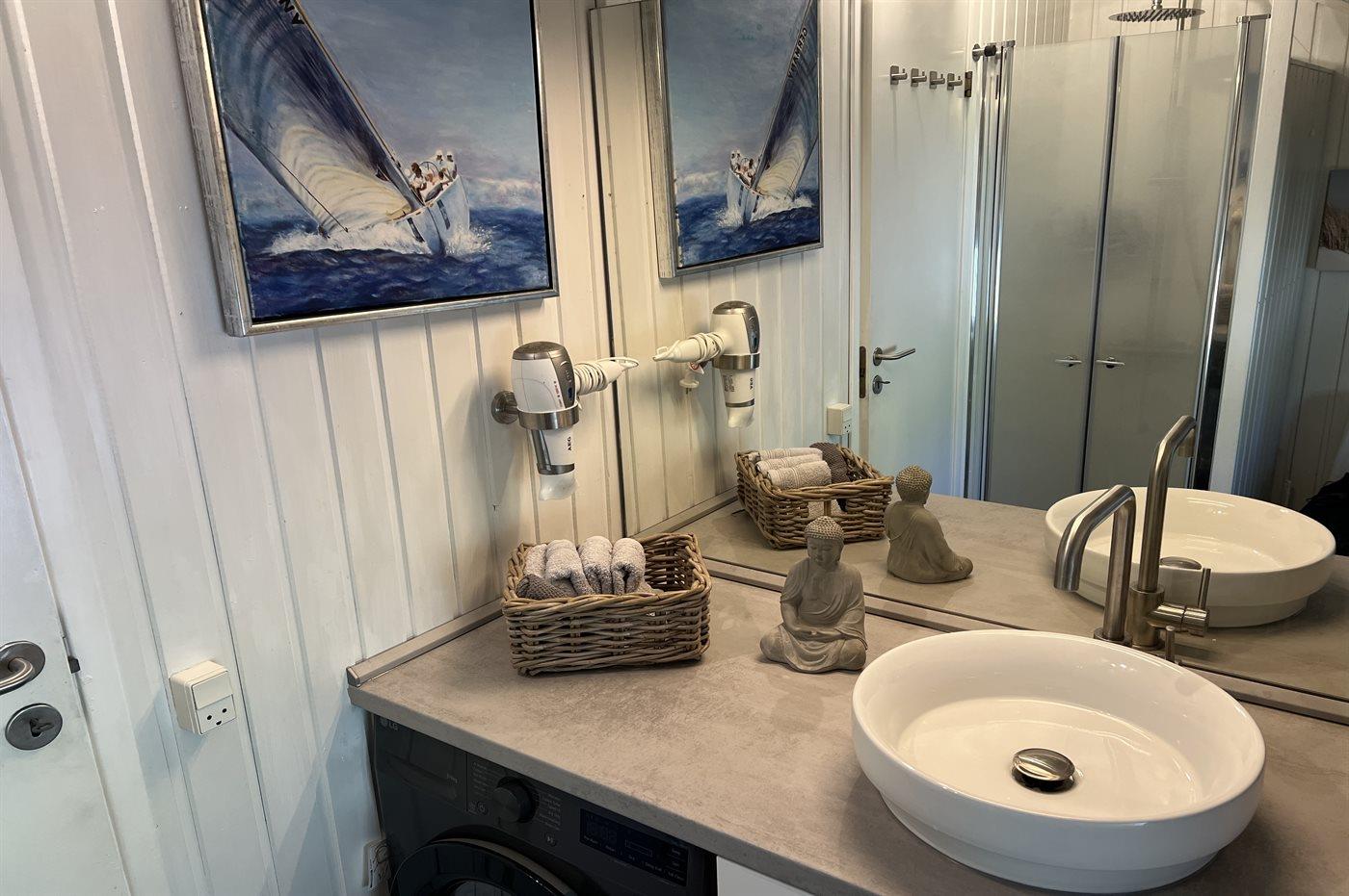 Køkkenet er udstyret med 1 køleskab. Der er 4 keramiske kogeplader, varmluftovn, opvaskemaskine og Nespresso-maskine.
