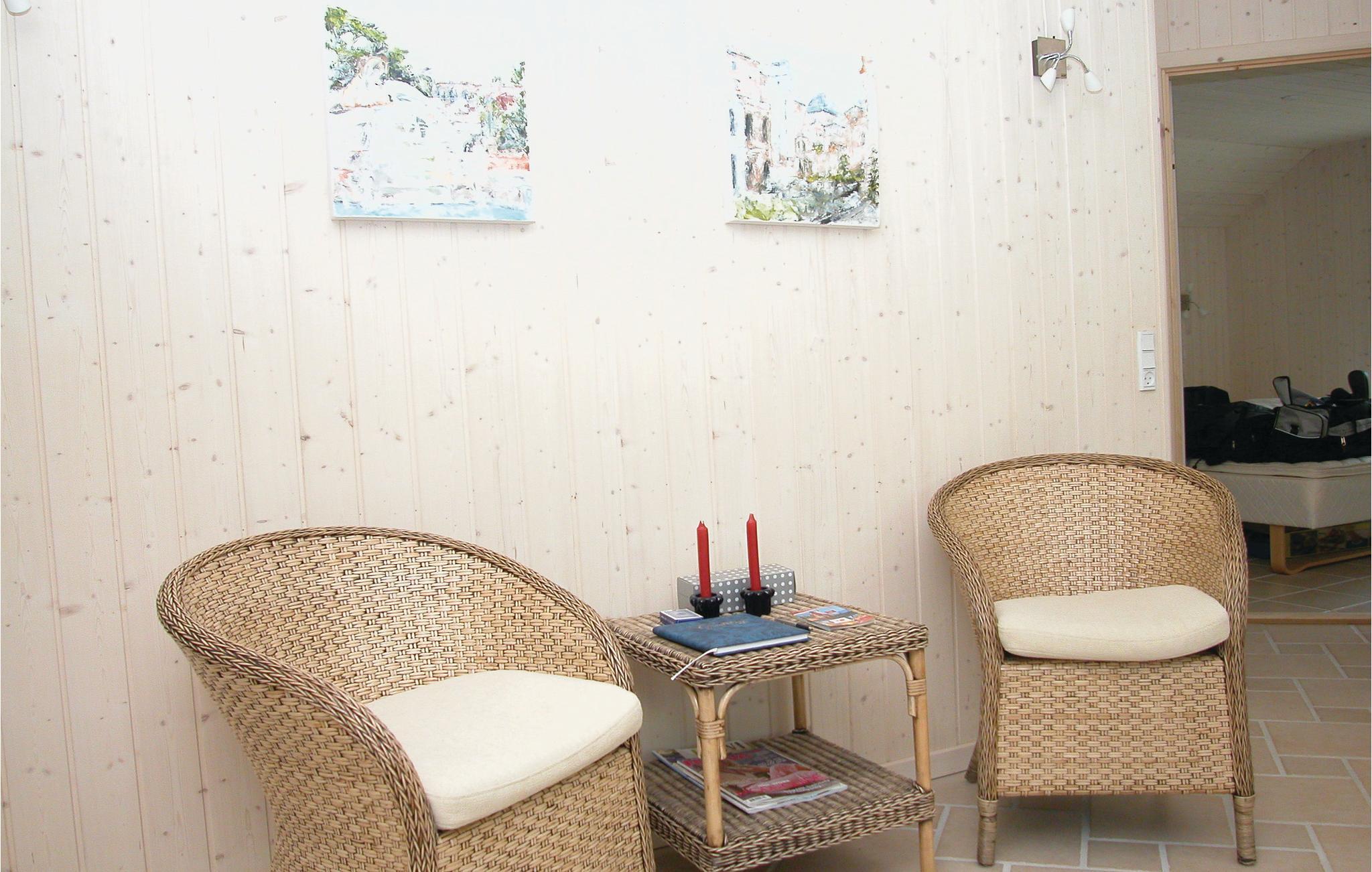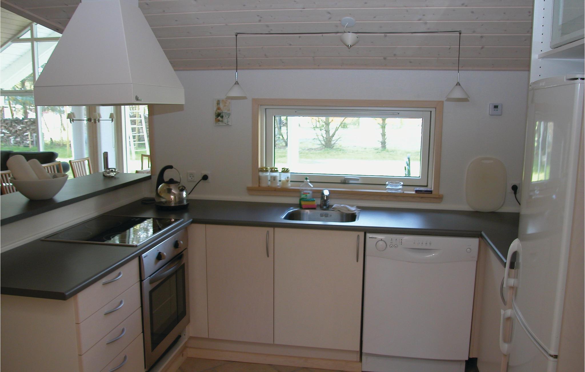 Et flot feriehus, bygget i førsteklasses materialer. Det ligger på en stor naturgrund i et dejligt feriehusområde hvor det er nemt at finde legekammerater hvis I har børn med. Det er, ligesom omgivelserne, ideelt til ophold året rundt. Vejret kan nydes med lange spadsereture på stranden, eller I kan slappe af hjemme på den store terrasse med noget godt i glasset og på tallerkenen. Hvis vejret ikke tillader udendørs aktiviteter, kan I hygge jer indendørs, hvor bl.a. den lune brændeovn i stuen skaber en afslappet stemning. Hele huset er i øvrigt lækkert indrettet med kvalitetsmøbler i flot design til et behageligt ophold.