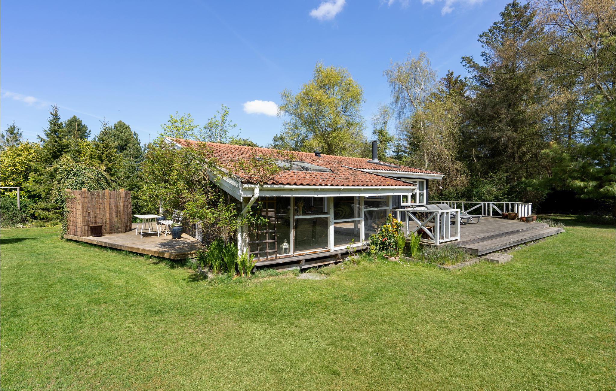 Lyst og familievenligt feriehus med brændeovn og en dejlig have, 600 m fra stranden.