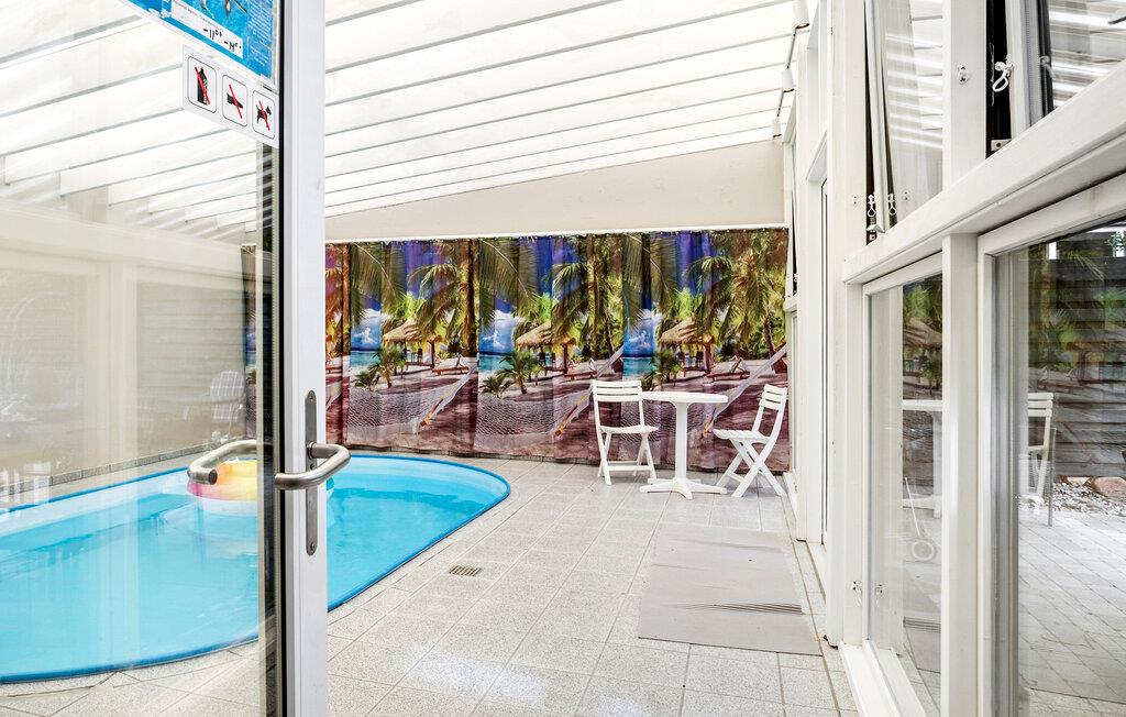 Rummeligt feriehus i Marielyst med indendørs pool, terrasse og nærhed til strand og aktiviteter.